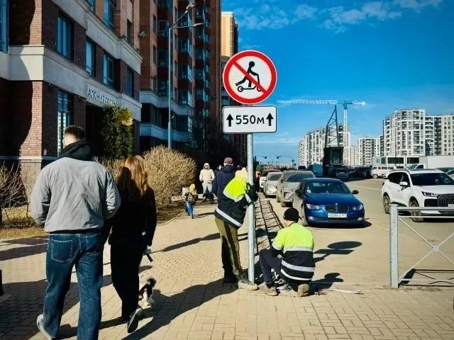 В городе начали устанавливать знаки, запрещающие езду на самокатах!