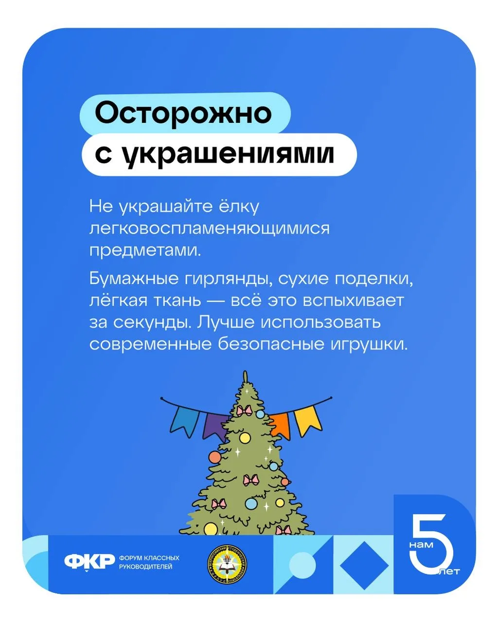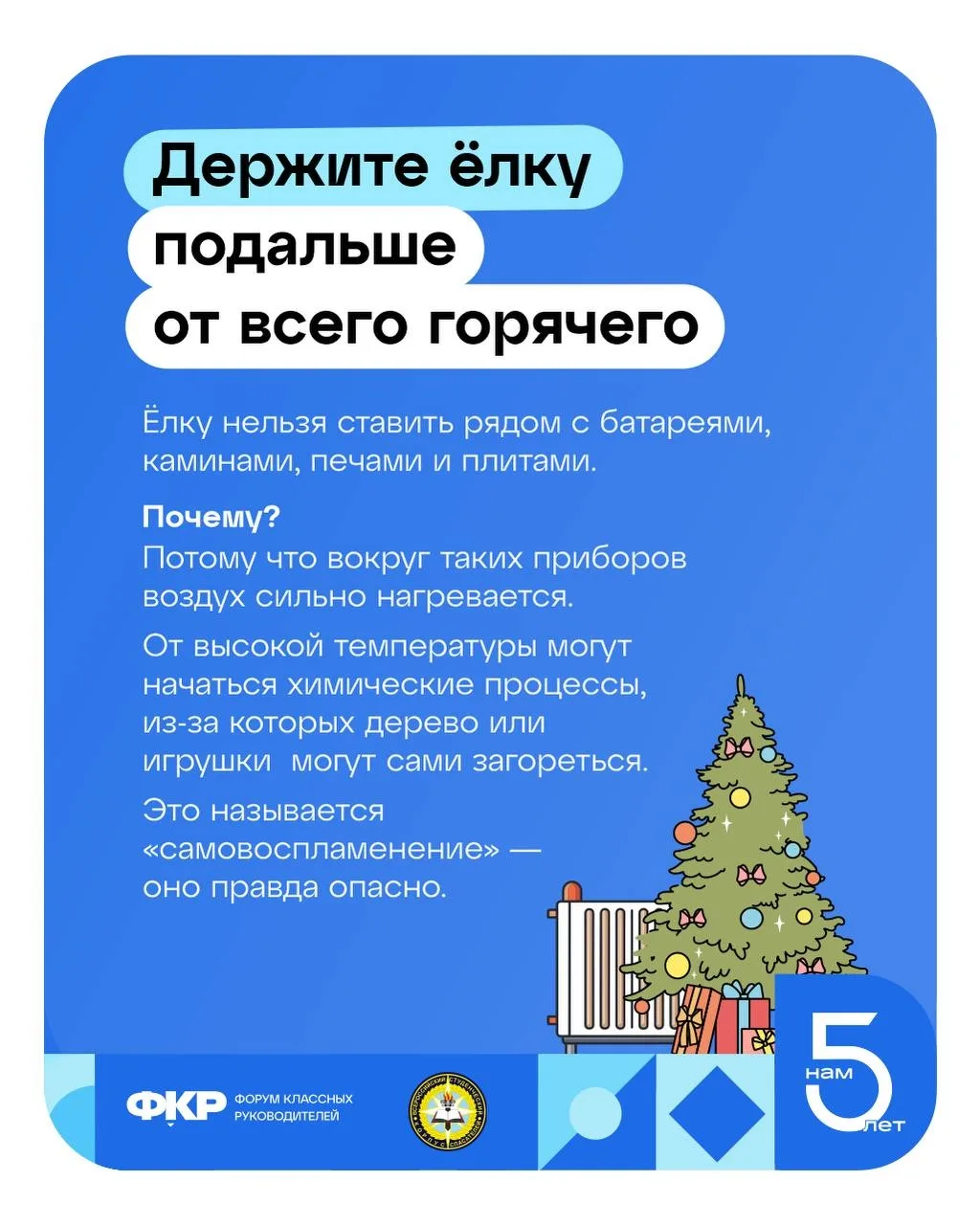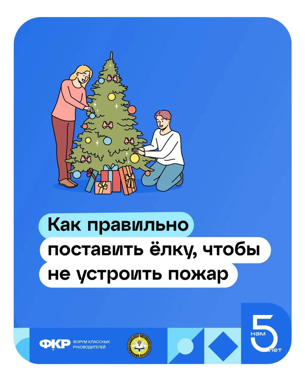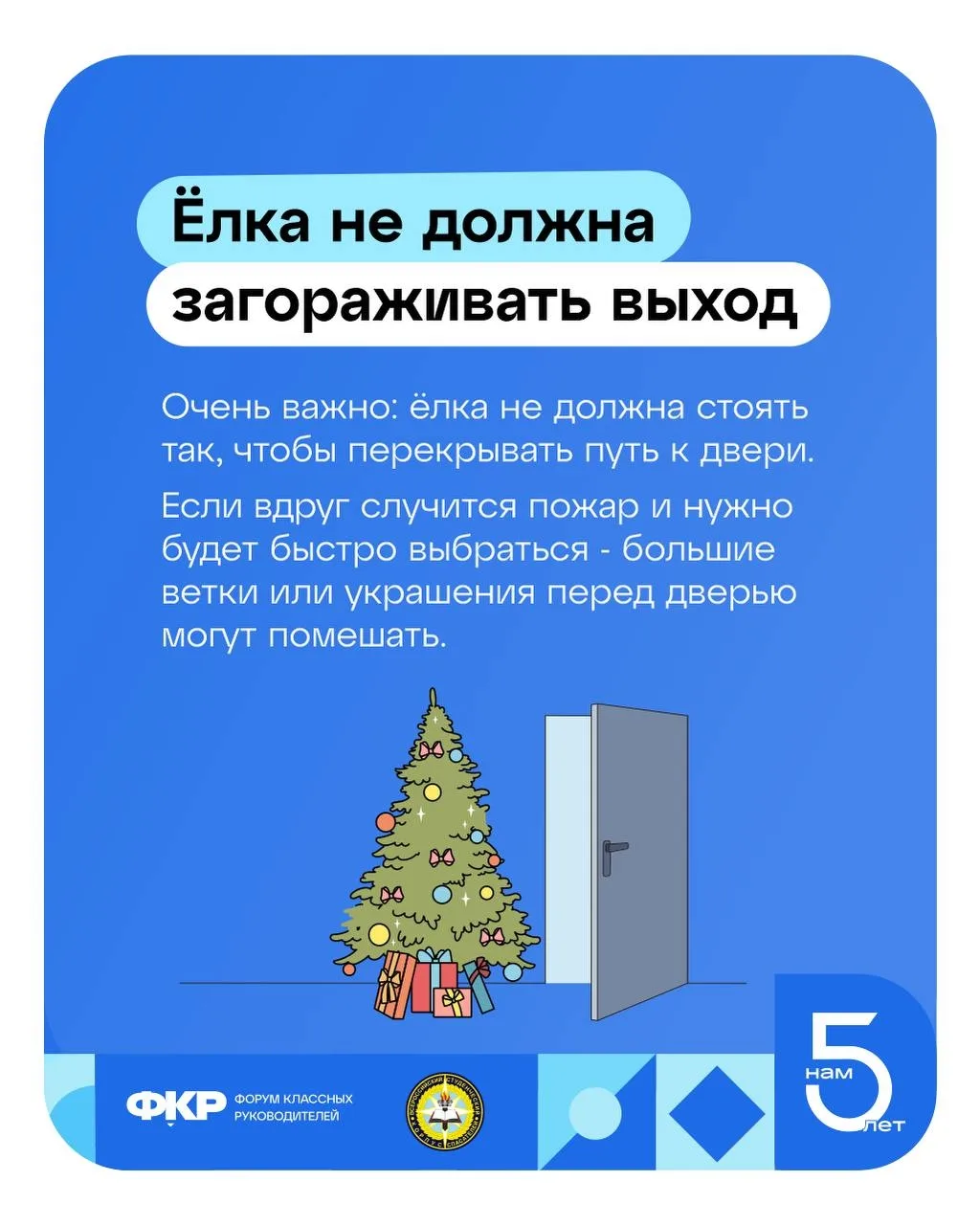 Украшенная ёлка — это красиво и празднично, но важно поставить её так, чтобы праздник не превратился в проблему. Что нужно помнить - читайте в памятке от Всероссийского студенческого корпуса спасателей 📖