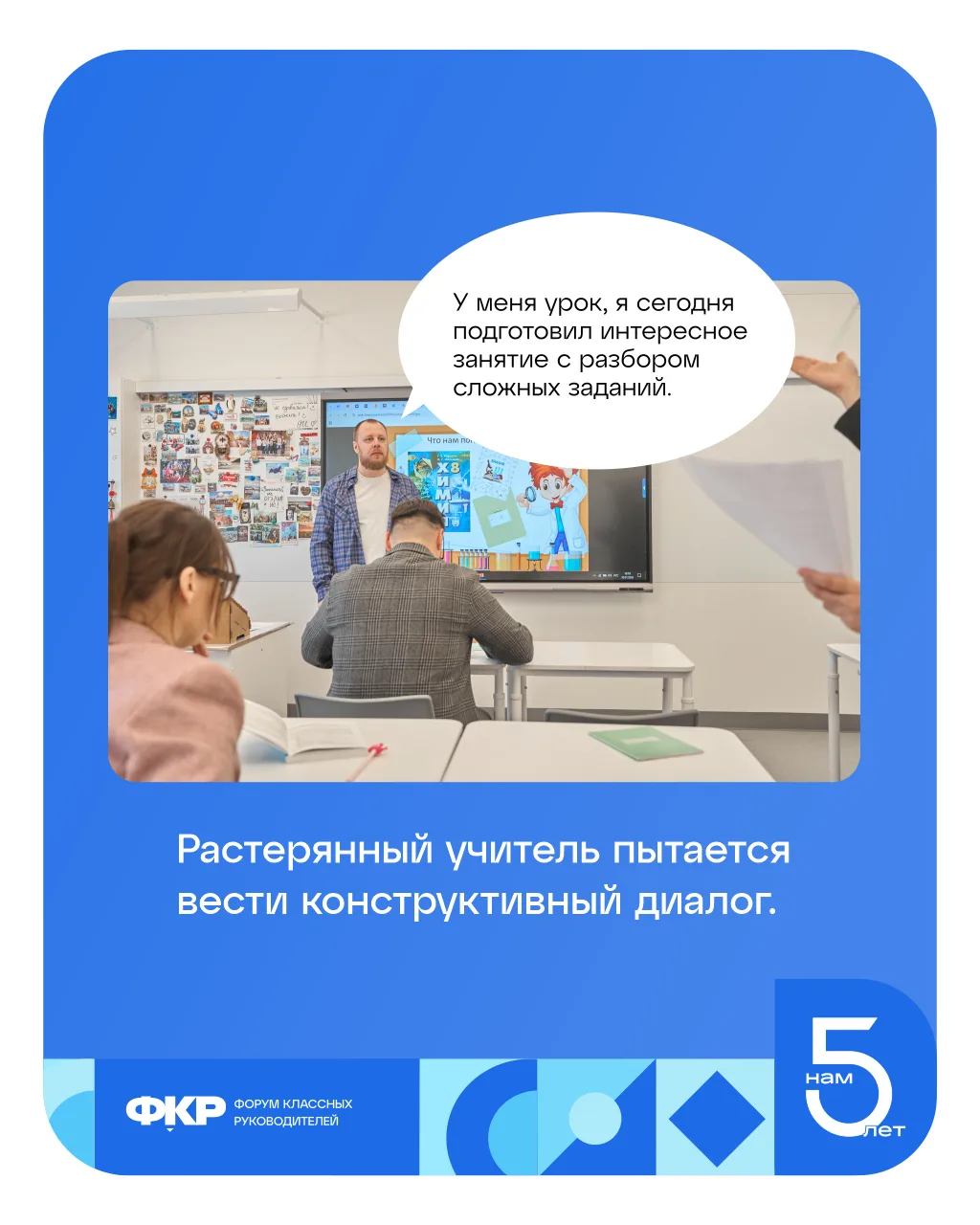 🧑🏫Ирина Мухамадеева: «Действие происходит в первом классе. «Учимся правильно входить в класс, в случае если опоздали. Алгоритм действий: постучаться, извиниться за опоздание, спросить разрешение на вход, зайти, сесть. На следующий день мальчик по имени Руслан опоздал. К моему удивлению, вопреки всем изученным правилам, он на носочках, без стука и без разрешения, глядя мне прямо в глаза, заходит в класс и садится на своё место. Спрашиваю: