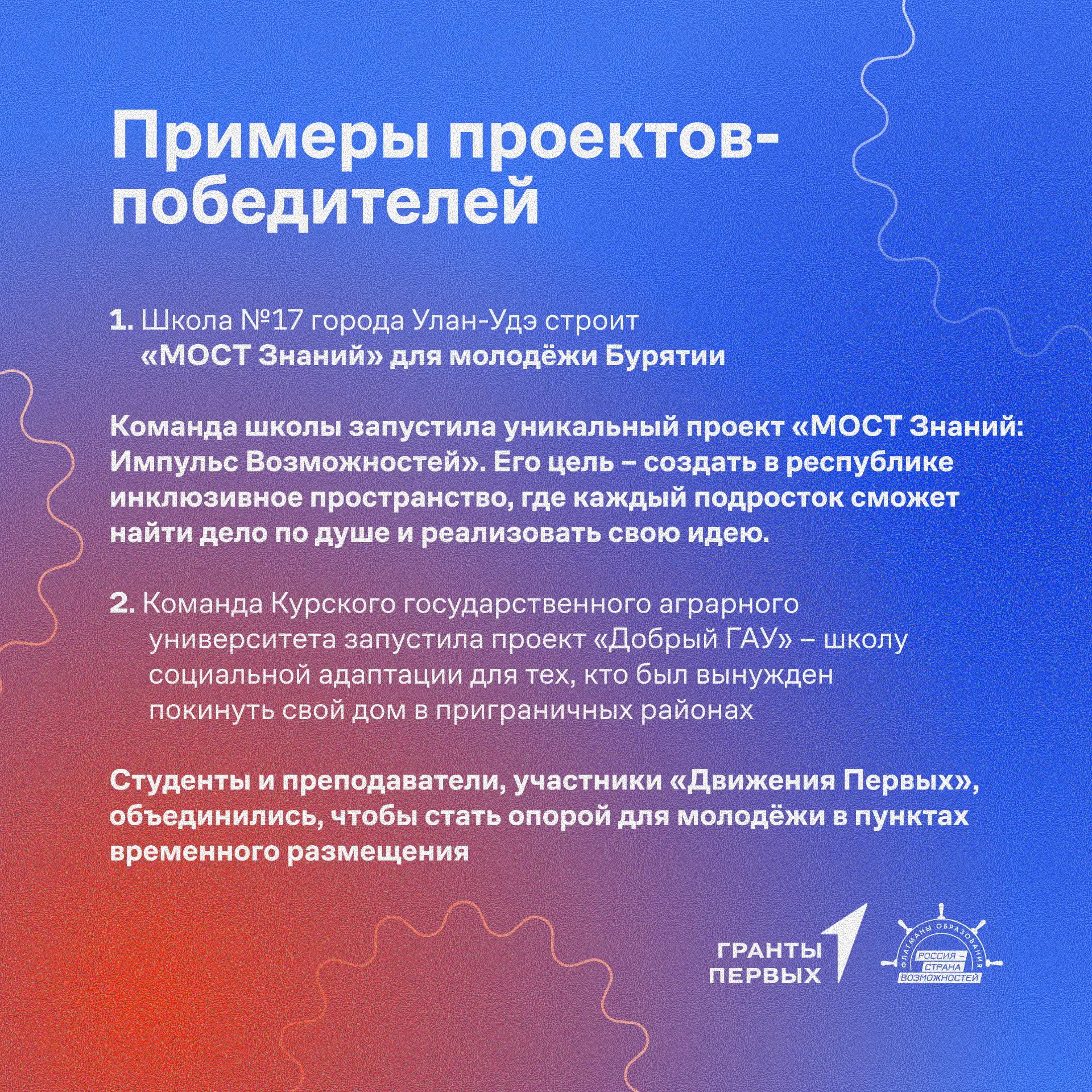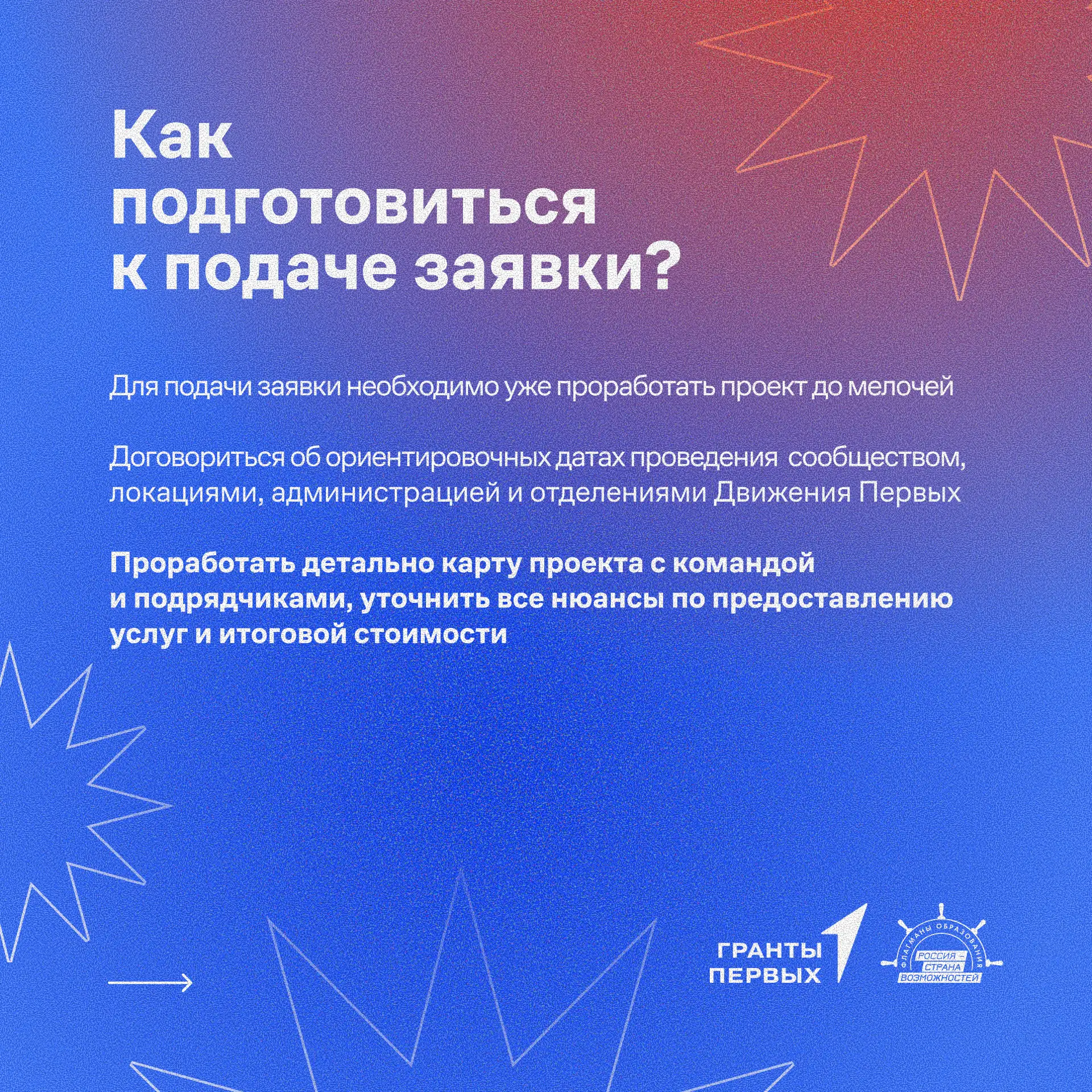 Совместно с Грантовым конкурсом Движения Первых подготовили небольшую шпаргалку, как правильно оформлять заявку и подаваться на грантовый конкурс – в карточках собрали пошаговую логику подготовки сильного проекта.