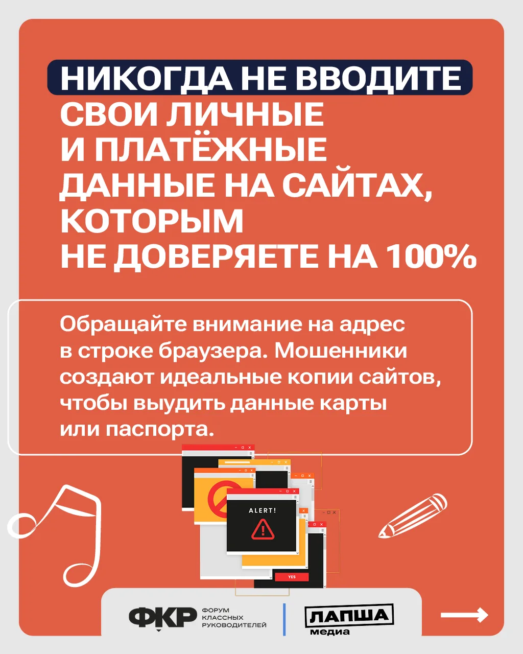 Наши друзья – Лапша Медиа – подробно и удобно, в карточках, рассказали как избежать обмана в интернете.