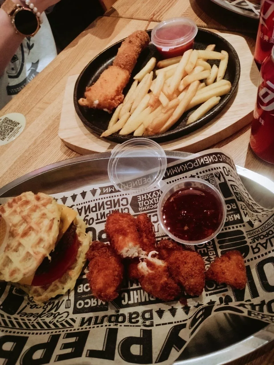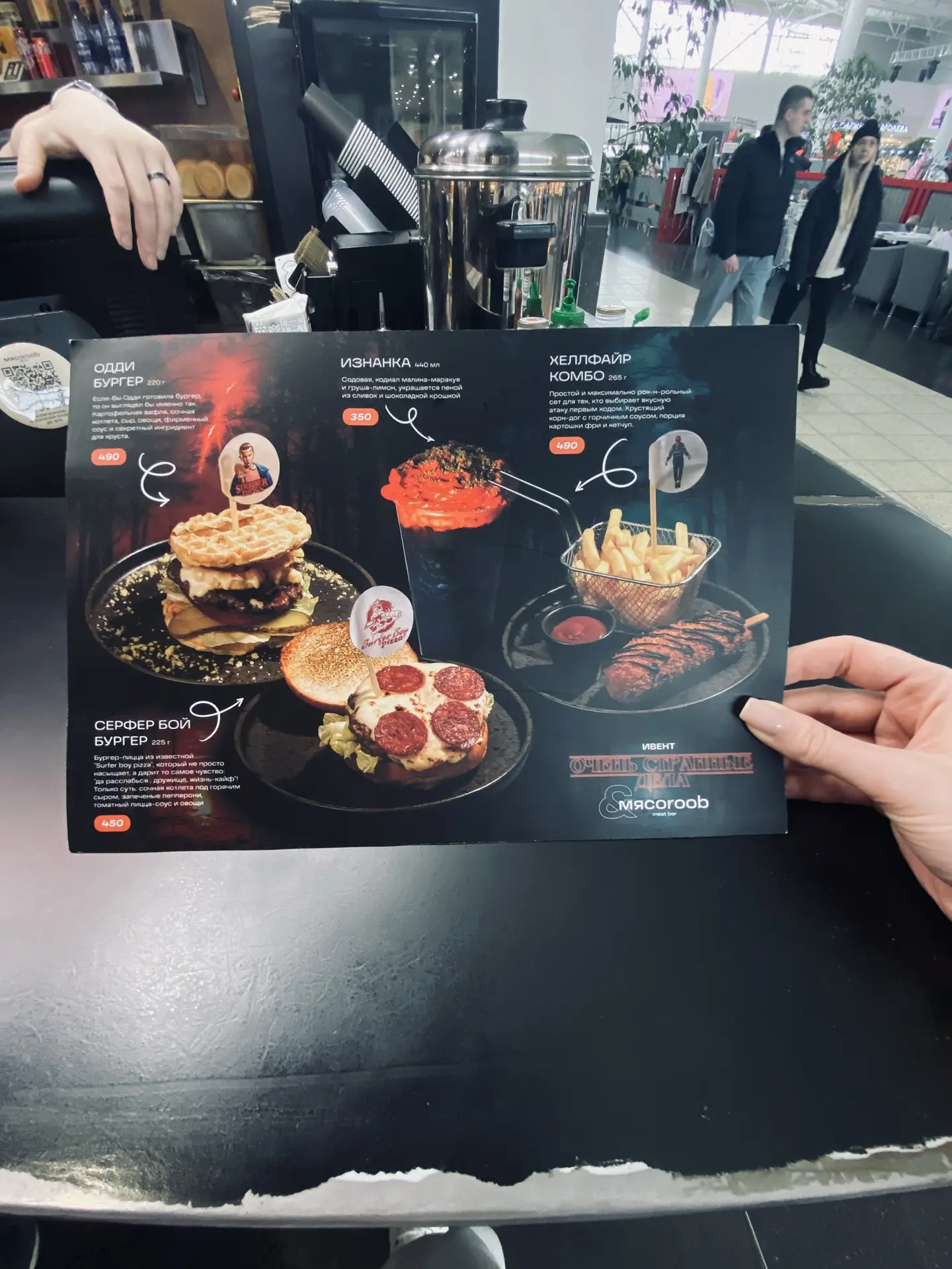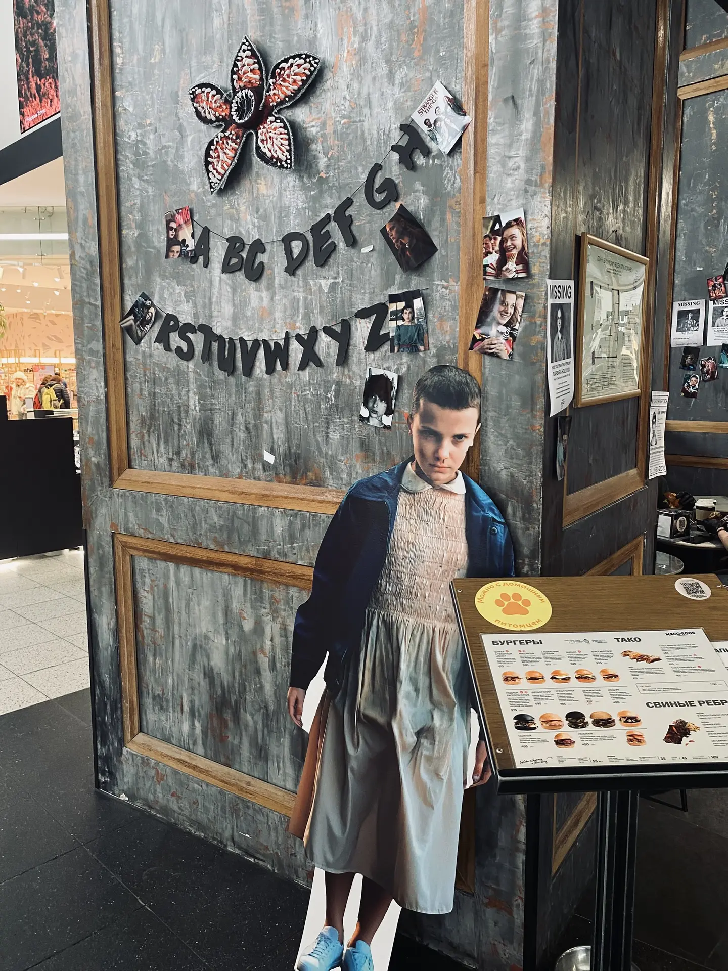 Захожу и правда не сразу поняла, где я. Гирлянды, лампочки, детали — всё передаёт ту самую атмосферу. А когда принесли бургер, я окончательно поверила, что провалилась в параллельную реальность 😄