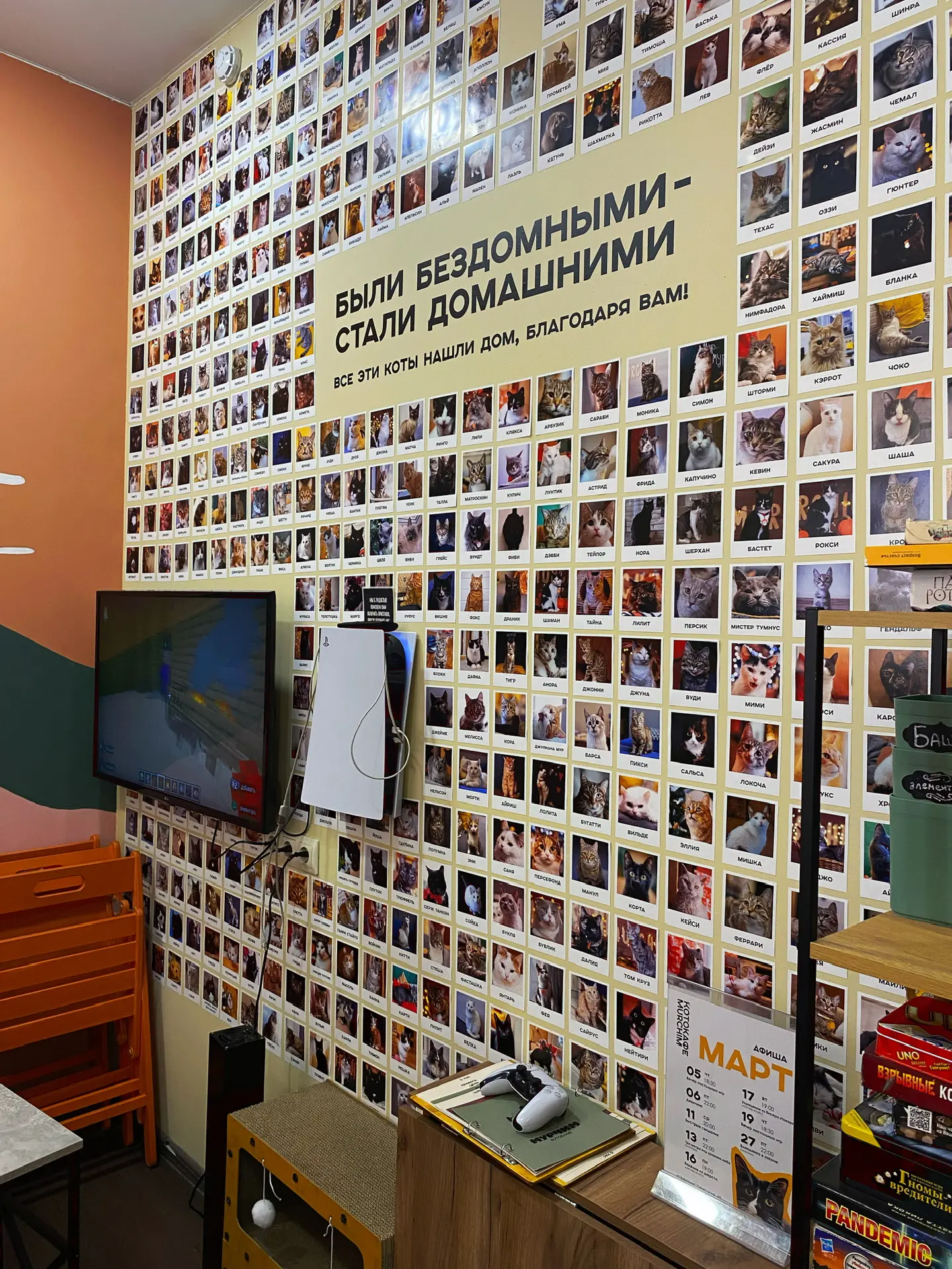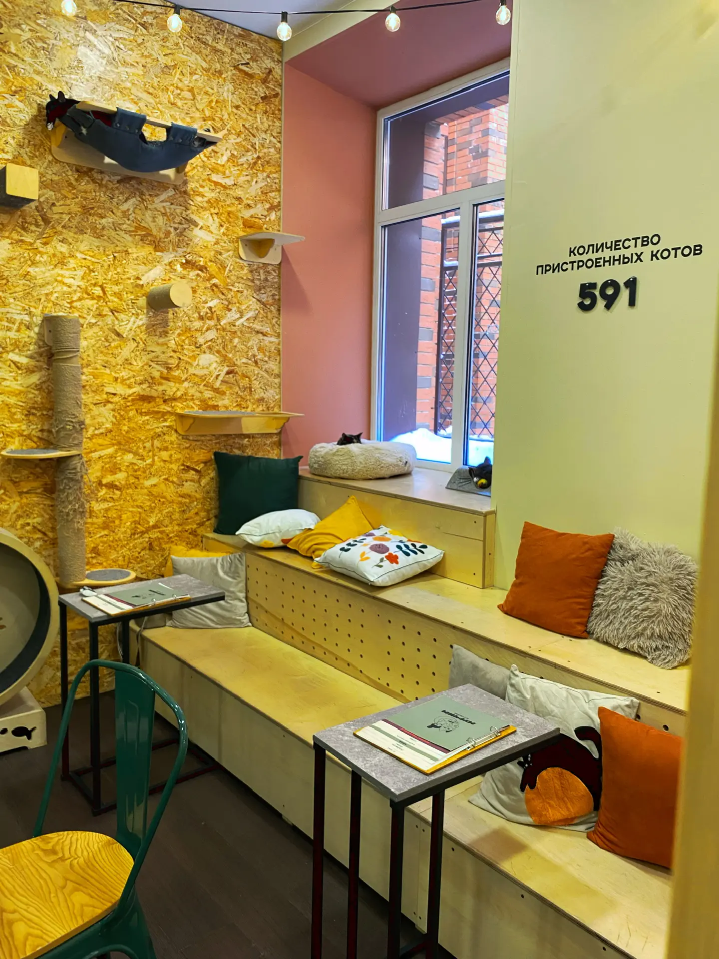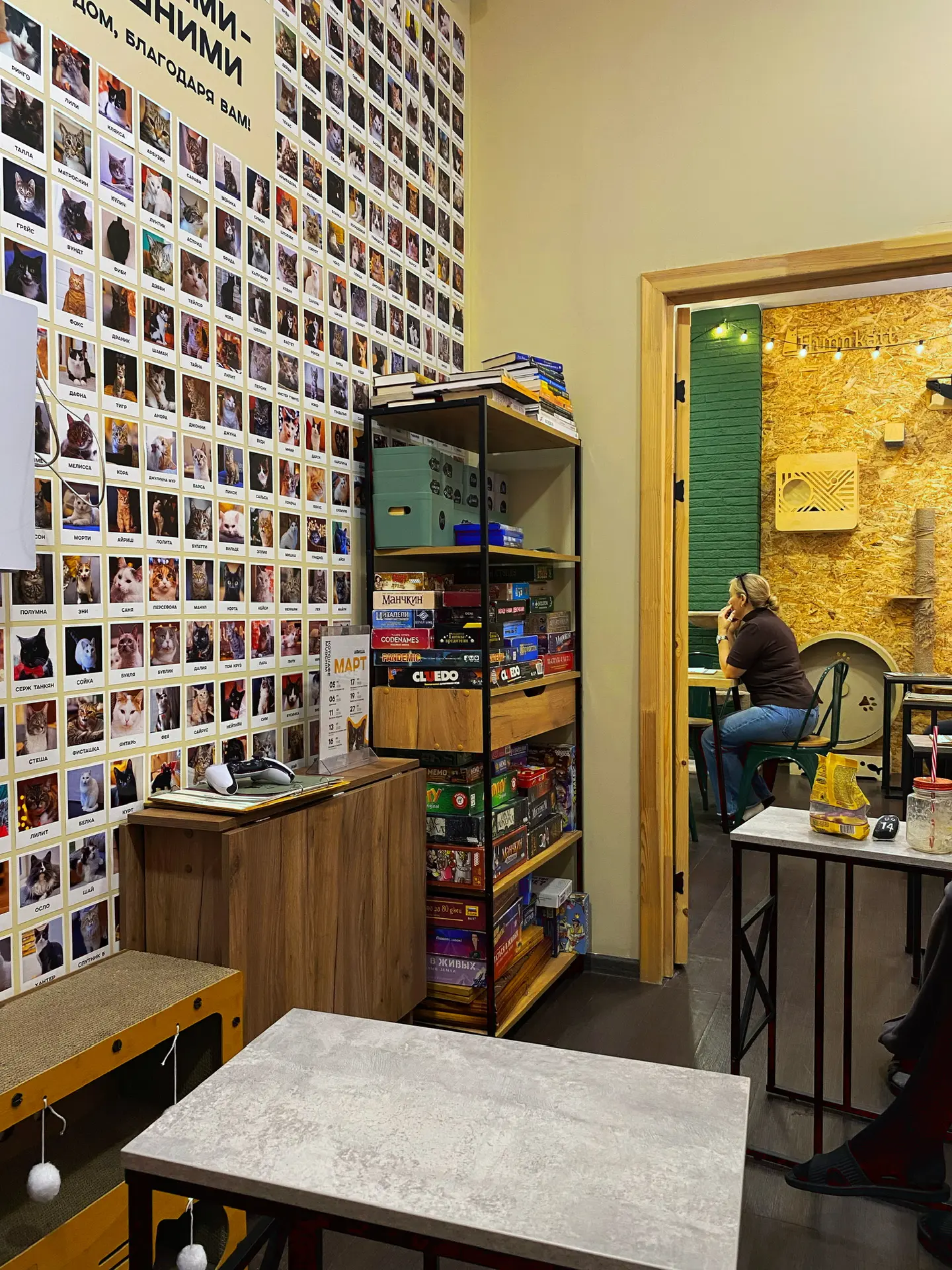 Тут живут пушистые обитатели. Котики, которые обожают, когда их гладят. Можно прийти, поиграть в настолки, зависнуть на приставке или просто сидеть и смотреть, как они мурчат.