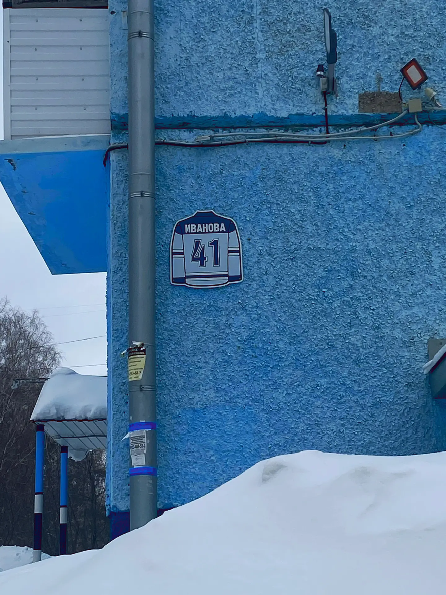 🏒 Таблички с номерами квартир выполнены в виде хоккейного свитера