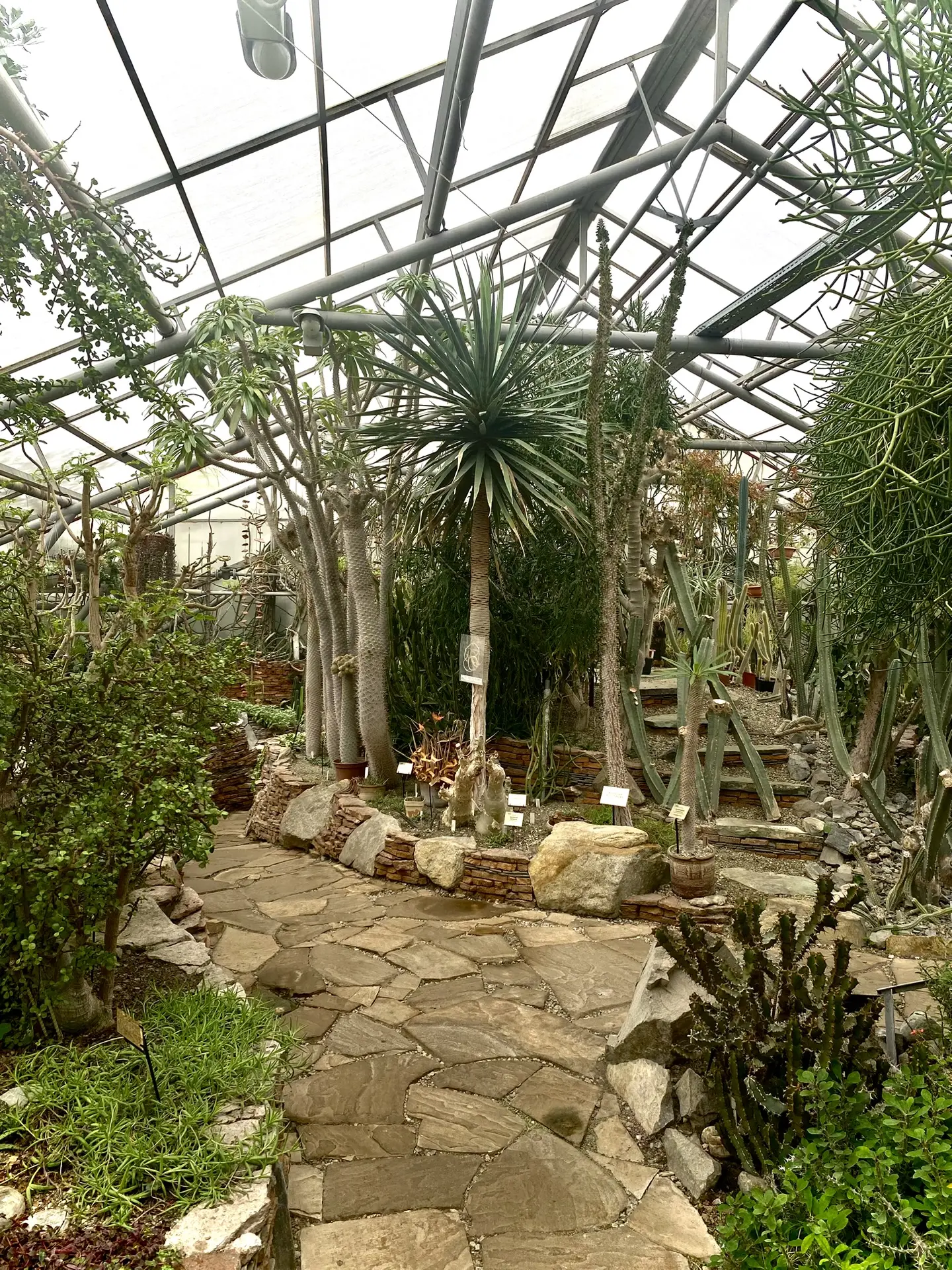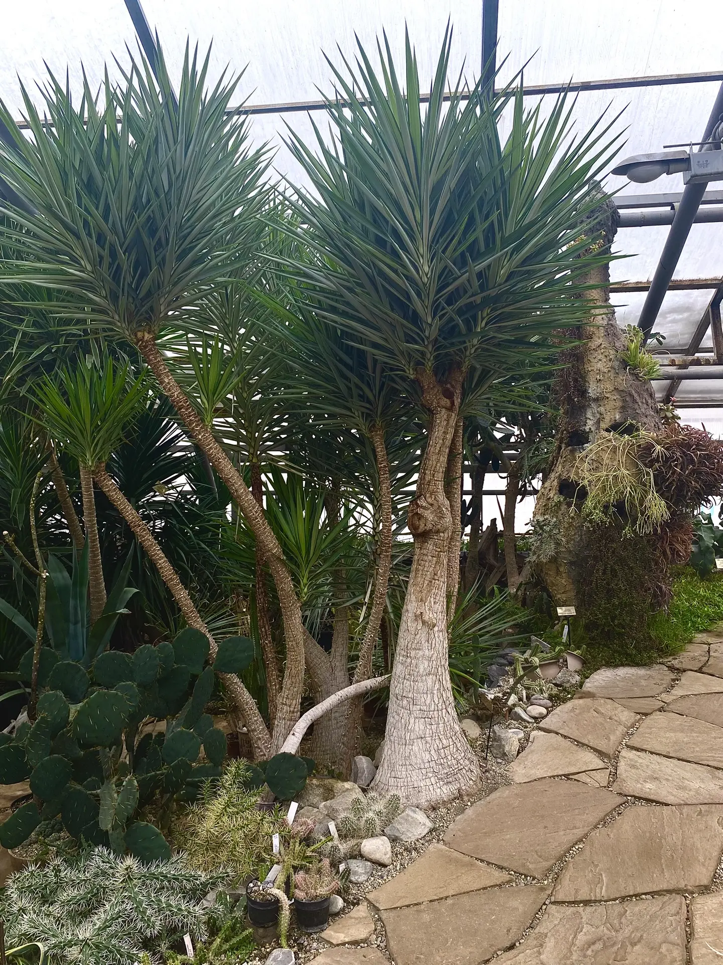 Захожу внутрь — и всё, приехали. Тропики. Пальмы, лианы, влажный воздух. Дышится так легко, что не хочется уходить. А рядом — вторая оранжерея, и там уже совсем другой мир: кактусы, суккуленты, колючки, пустыня.