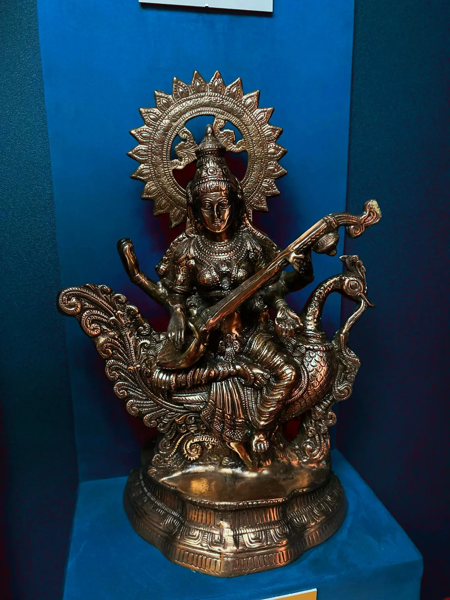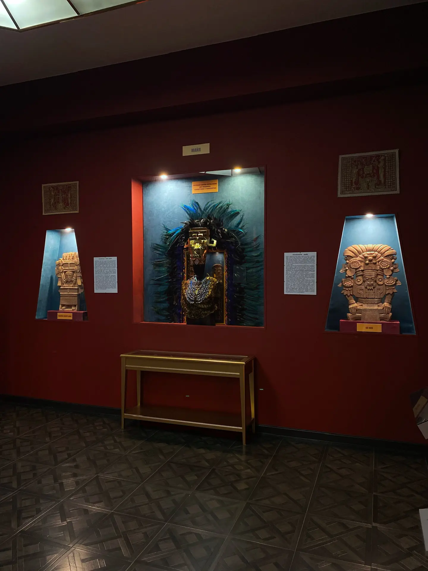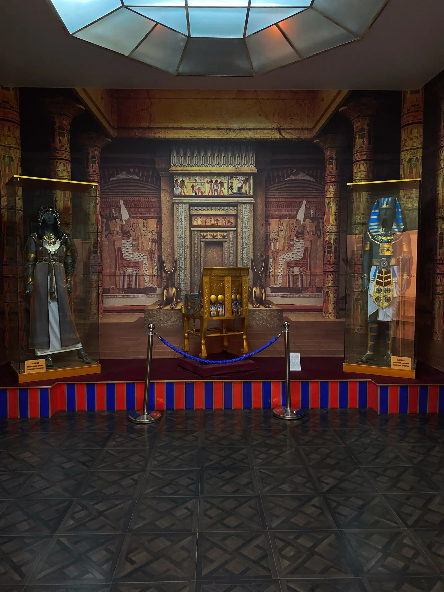 Можно увидеть копию трона Тутанхамона, зерцало русского воина XVI века, маски инков, наскальные рисунки с Алтая и даже коллекцию денежных купюр с изображением Солнца.
