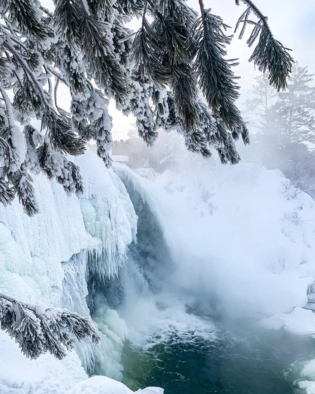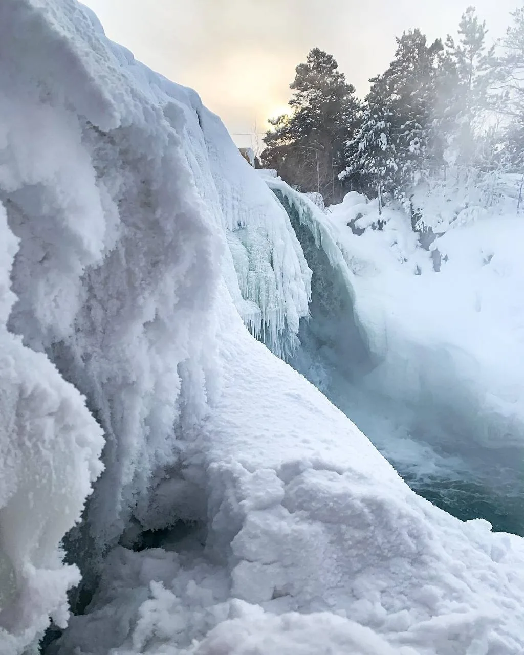 ✨ Увидеть уникальный зимний пейзаж — водопад, застывший в причудливых формах;