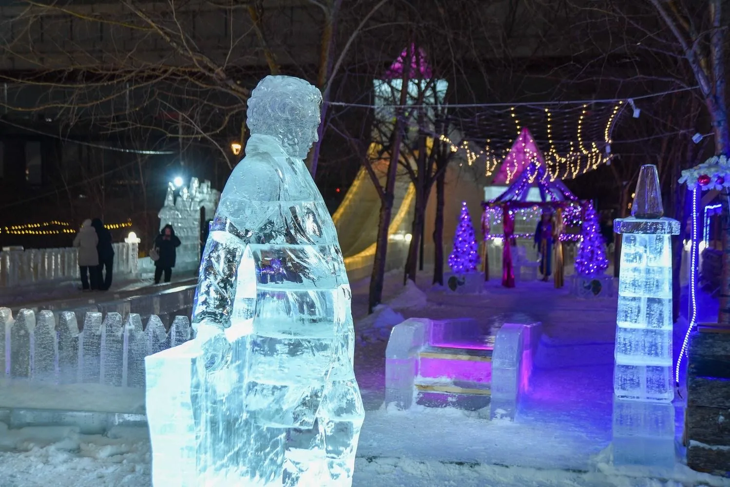 Тематика ледяных скульптур в этом году — морская, и городок гордо носит название «Путь к Оби».