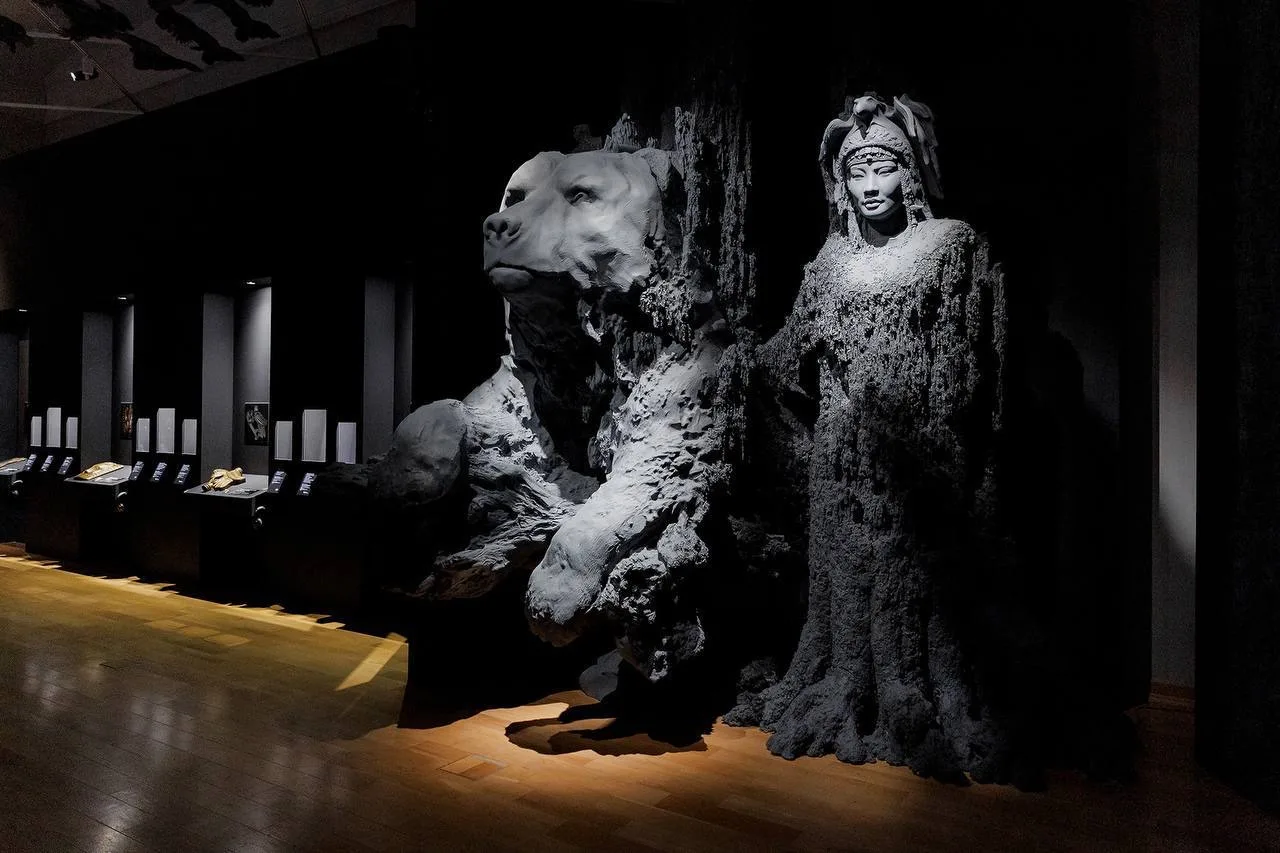 Современное искусство на выставке представлено через работы знаменитого сибирского скульптора Даши Намдакова, который переосмысливает наследие коренных народов в своём творчестве.