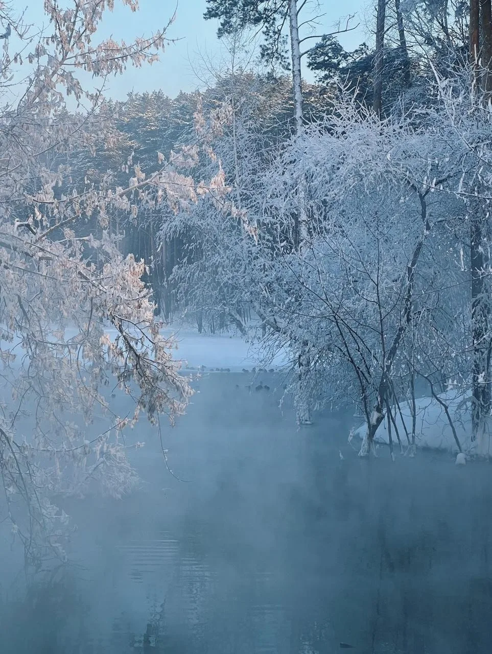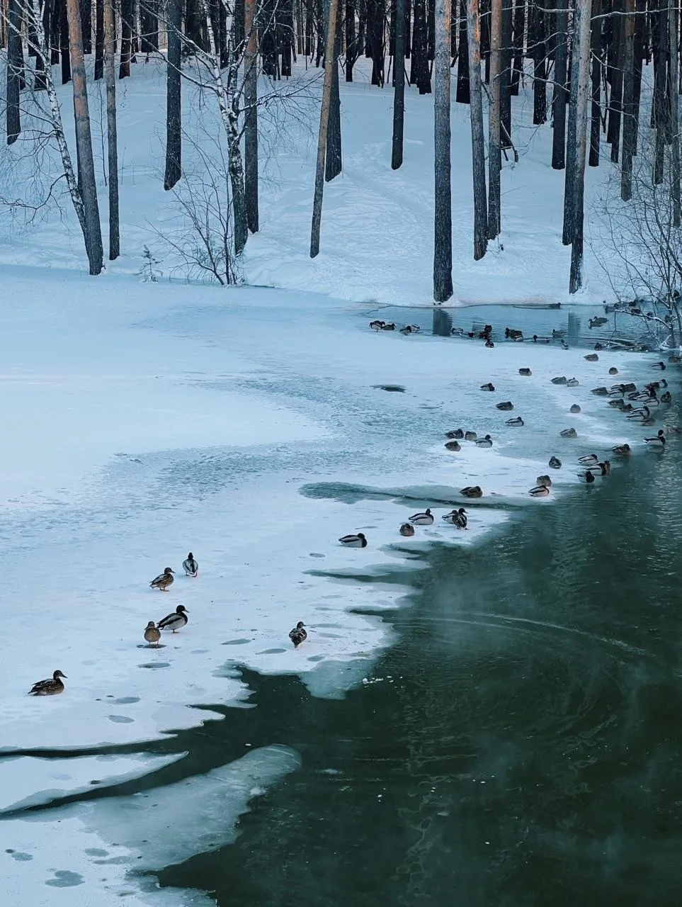 💧 контрастная тёмная вода на фоне белоснежного окружения;