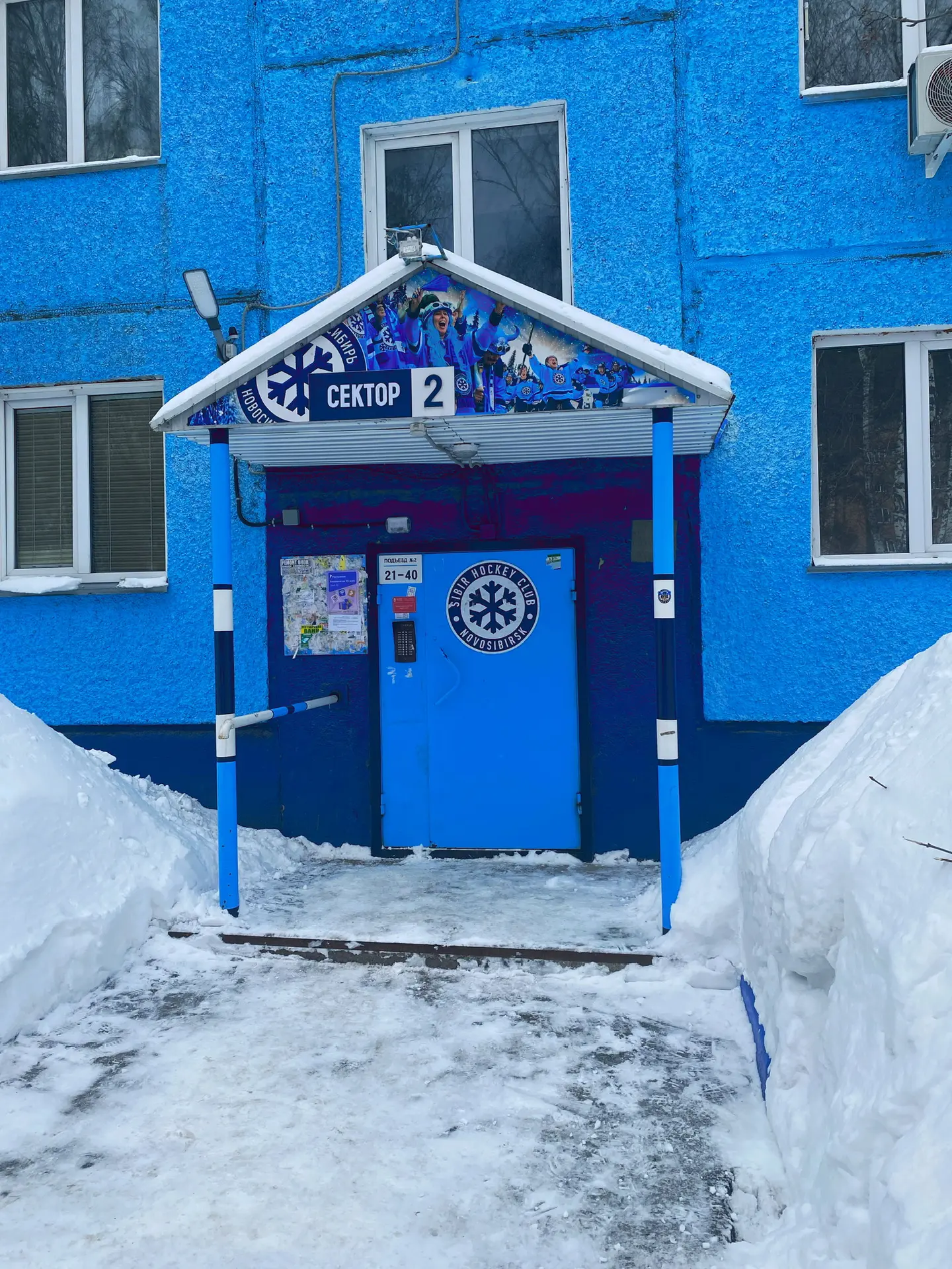 🏒 Над подъездами — надпись «Вперёд, Сибирь!»