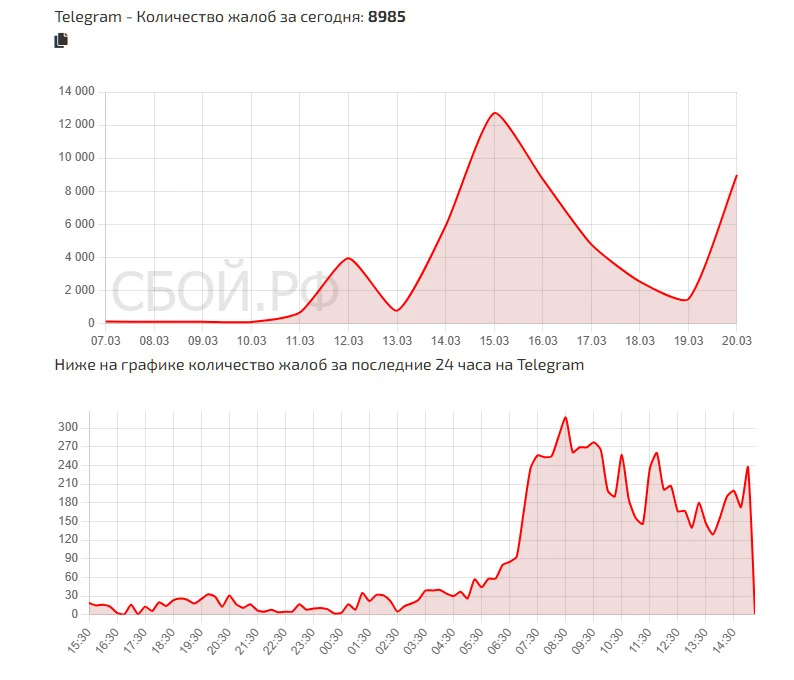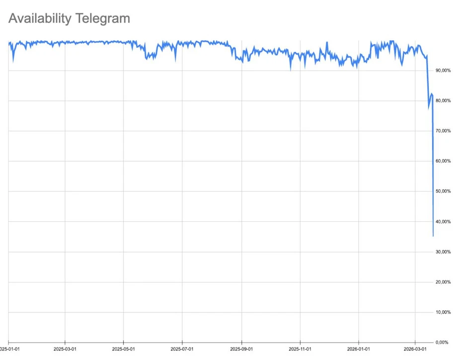 Пользователи из России продолжают массово сообщать о сбоях в работе мессенджера Telegram. Согласно данным от сервисов, которые отслеживают неполадки онлайн-сервисов, уровень доступности мессенджера за день снизился с 80% до 35%. При этом массовых жалоб на иностранных ресурсах не зафиксировано, что указывает на локальный характер проблем в РФ.