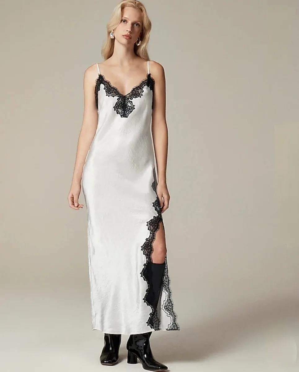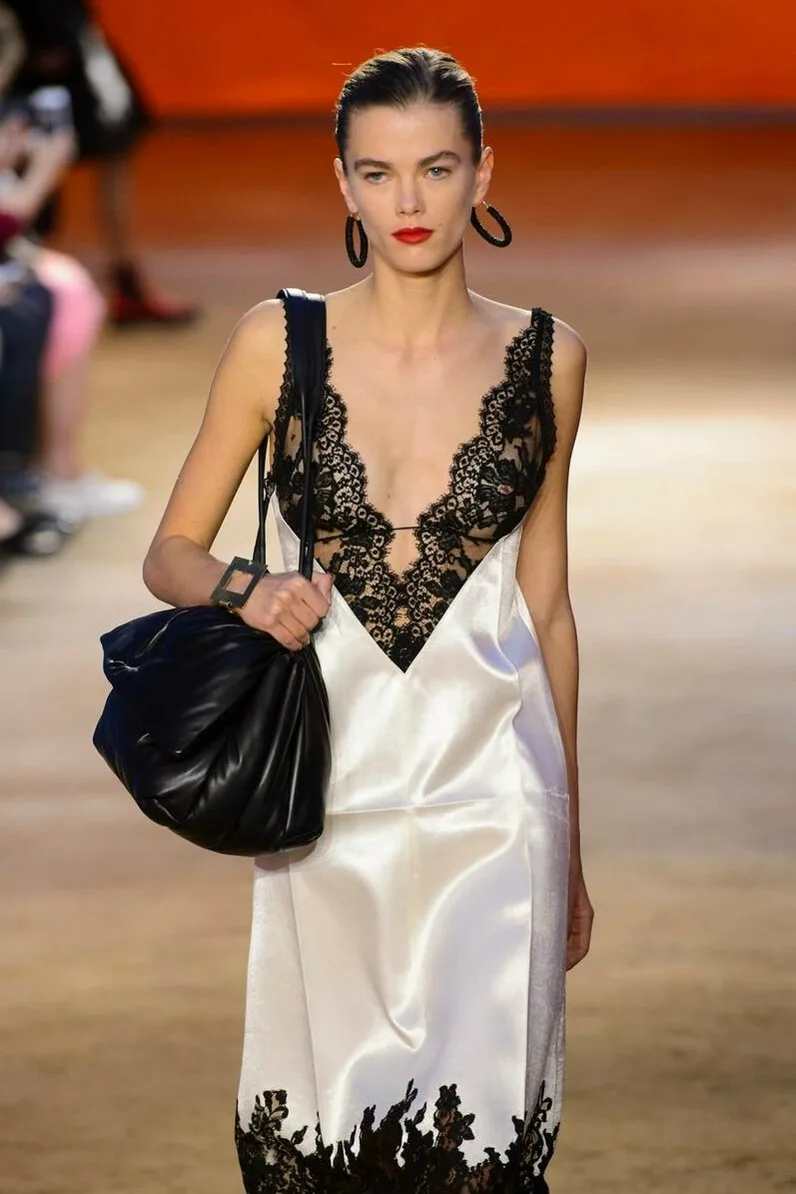 Это было в 2015 году, во время расцвета эпохи Фиби Фило в Céline, когда мы впервые увидели на подиуме ее шелковые платья и топы с кружевной отделкой. В них чувствовалась атмосфера 90-х, но Фиби Фило привнесла в них современные нотки.