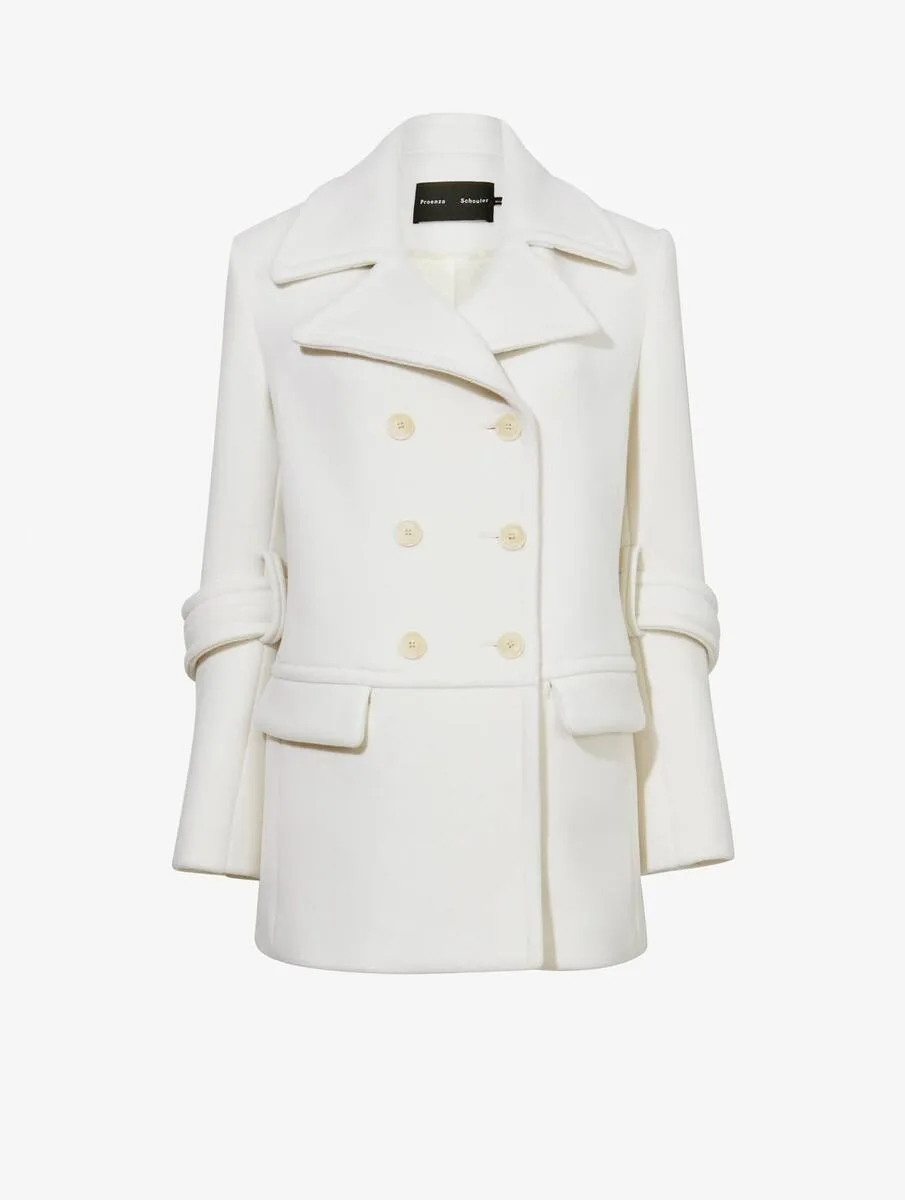 Белоснежное двубортное пальто от Proenza Schouler с чёткой архитектурой плеч, чёрные джинсы скини, астроносы, высокие сапоги на шпильке от Christian Louboutin, тёмные очки и аккуратные кожаные перчатки. Контраст белого и чёрного работает безупречно. Лаконично, графично, очень собрано. Силуэт вытянут, линия ноги подчёркнута, образ выглядит динамичным даже в статике.