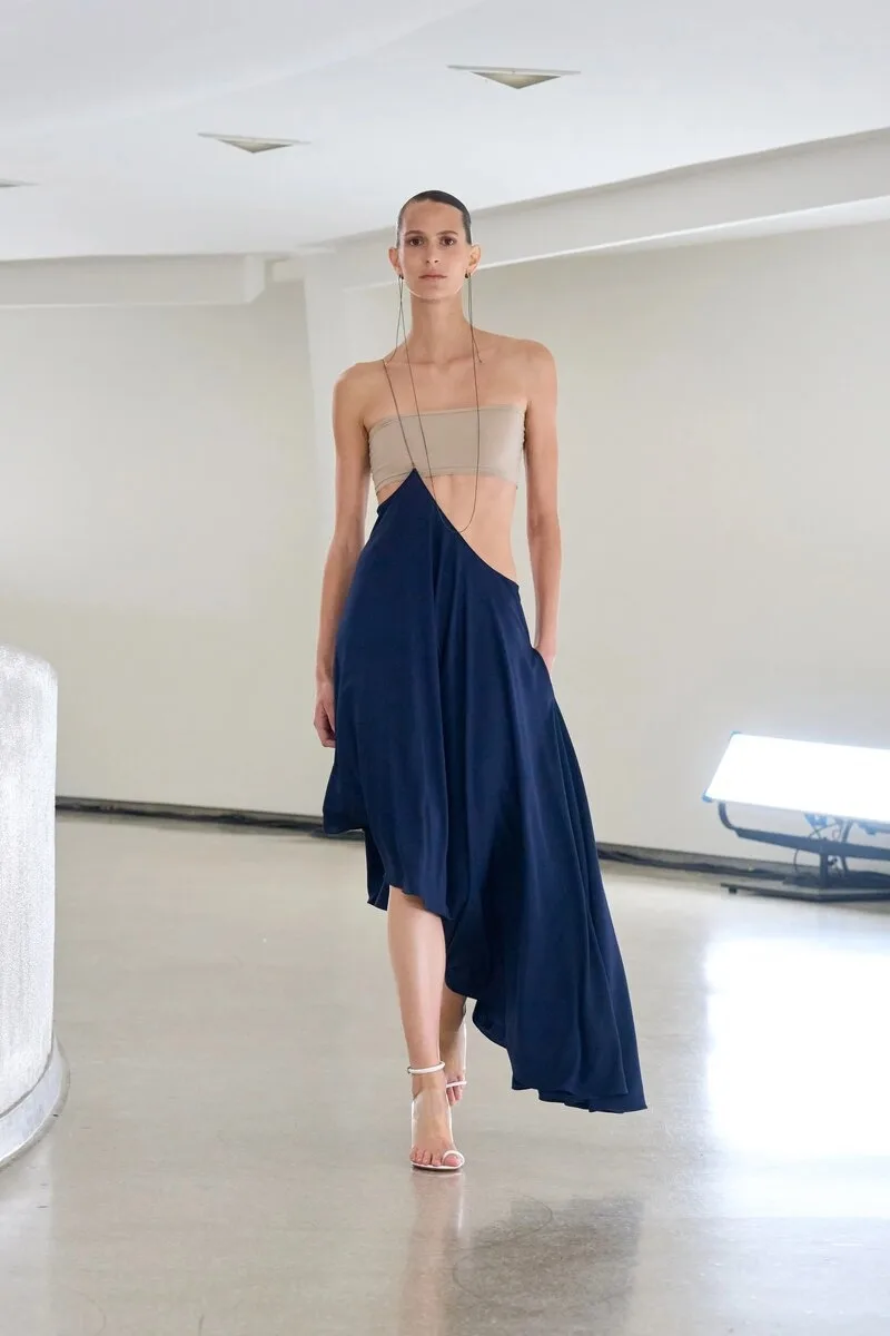 Топы-бандо и шаровары были навеяны трикотажными изделиями американского дизайнера Роя Холстена 1970-х годов (считается, что Рой был первым минималистом, а его дизайны часто обманчиво скромны), в то время как пальто с двойным капюшоном и широкие плащи-накидки были кивком в сторону франко-американского кутюрье 1950-1960-х годов Полин Трижер.