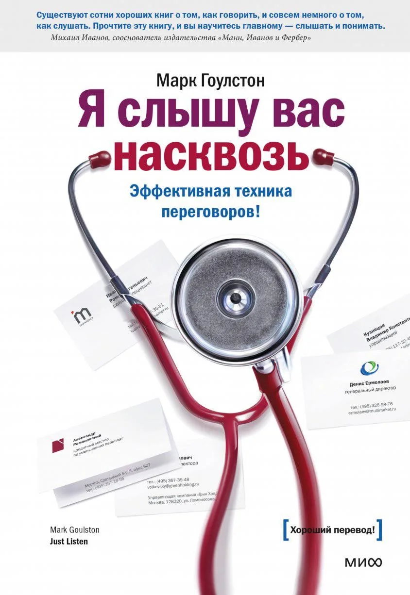 • Я слышу вас насквозь. Гоулстон М. Психиатр, который учил переговорщиков ФБР. Его метод строится не на красивых аргументах, а на том, чтобы человек почувствовал: его поняли. Книга про активное слушание.