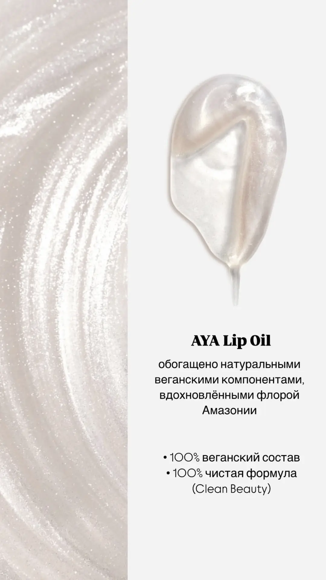 Сияние, которое невозможно не заметить🩵 Любимое масло AYA сияет лёгким жемчужным переливом, создавая эффект «поцелованных светом» губ. Кстати, это наш хит продаж. Как вам?