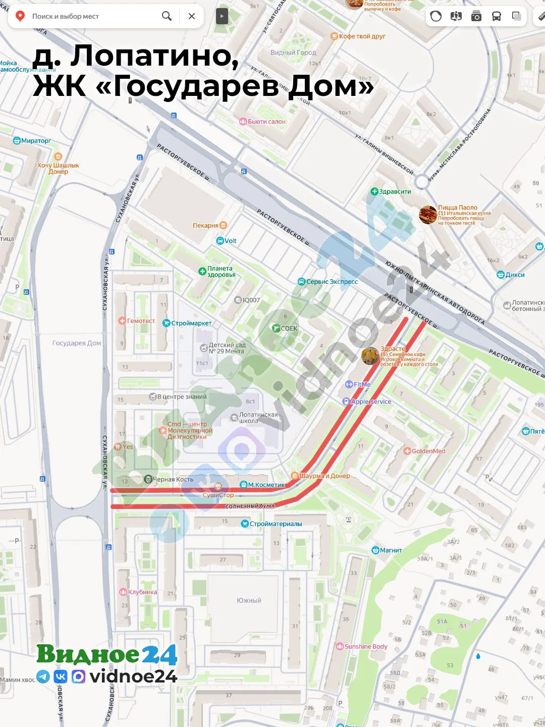 📍 г. Видное, Белокаменное шоссе, ЖК «Видный», дом 1 и 7