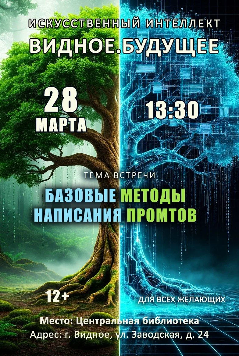 В Центральной библиотеке города Видное пройдет бесплатный семинар на тему «Видное.Будущее: Базовые методы написания промтов для ИИ». Промт - это текстовый запрос с набором инструкций, который пользователь отправляет в нейросеть для выполнения определённой задачи.