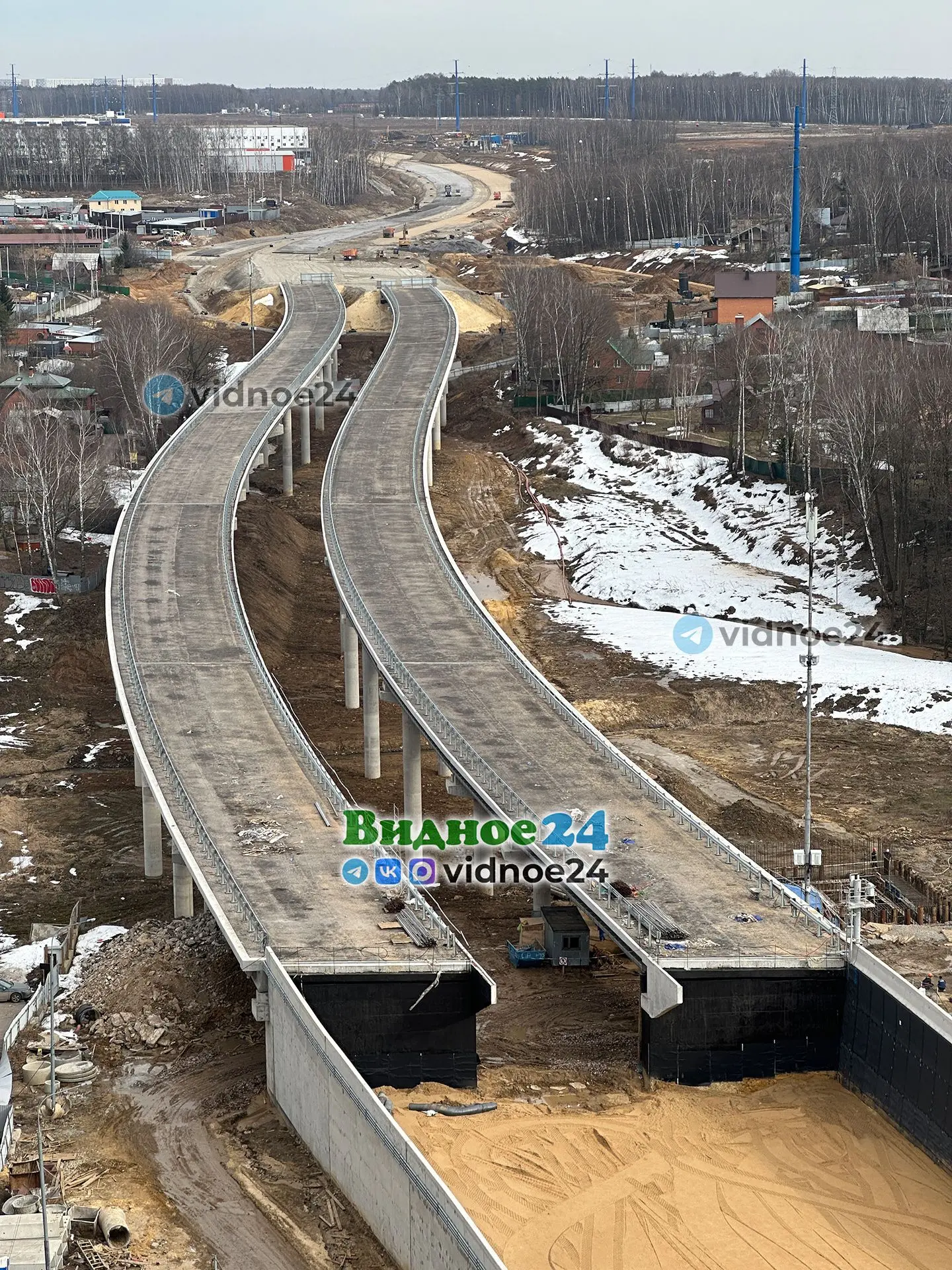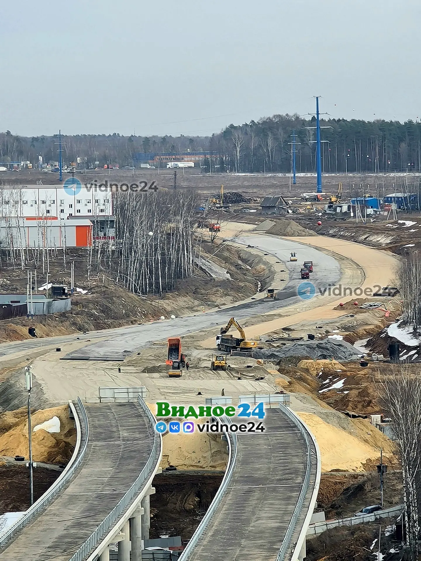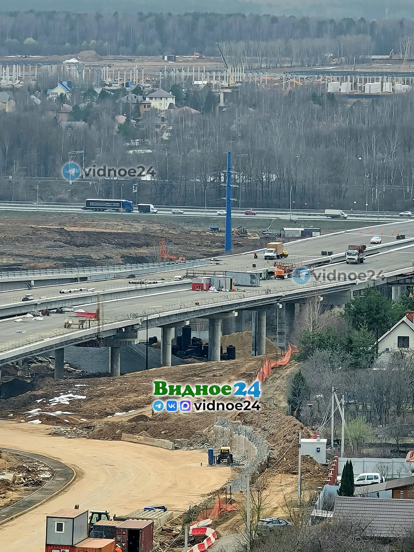 Фотографии строительства Южно-Лыткаринской автодороги (ЮЛА, платный дублер МКАД) на территории города Видное. 1 апреля 2026 года