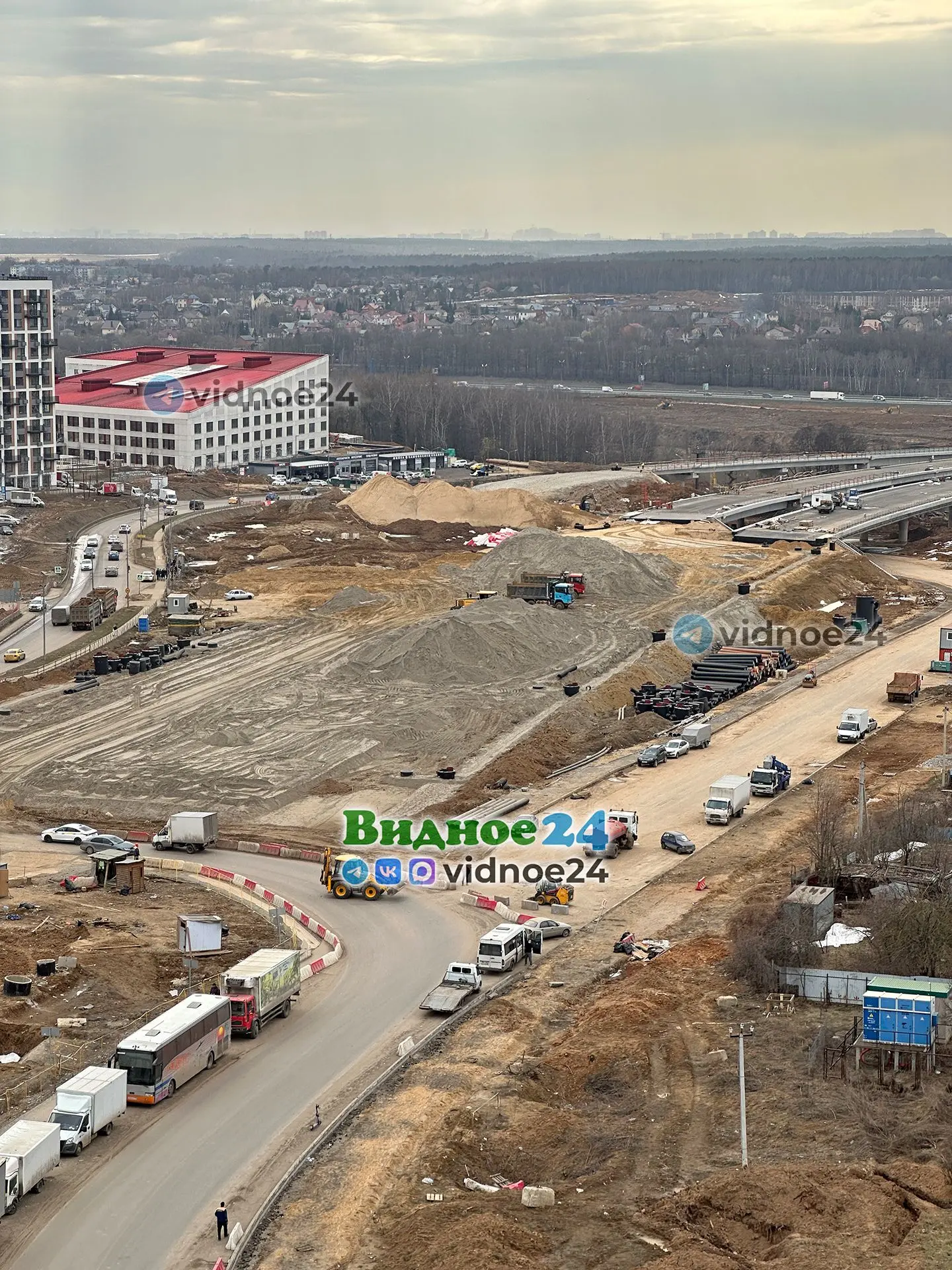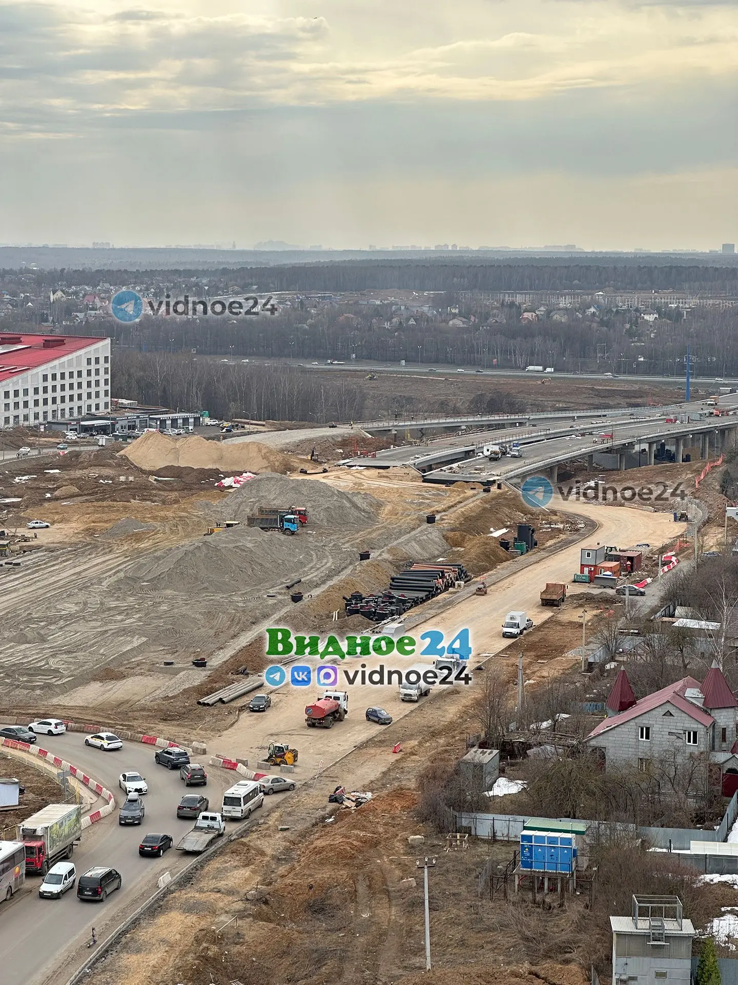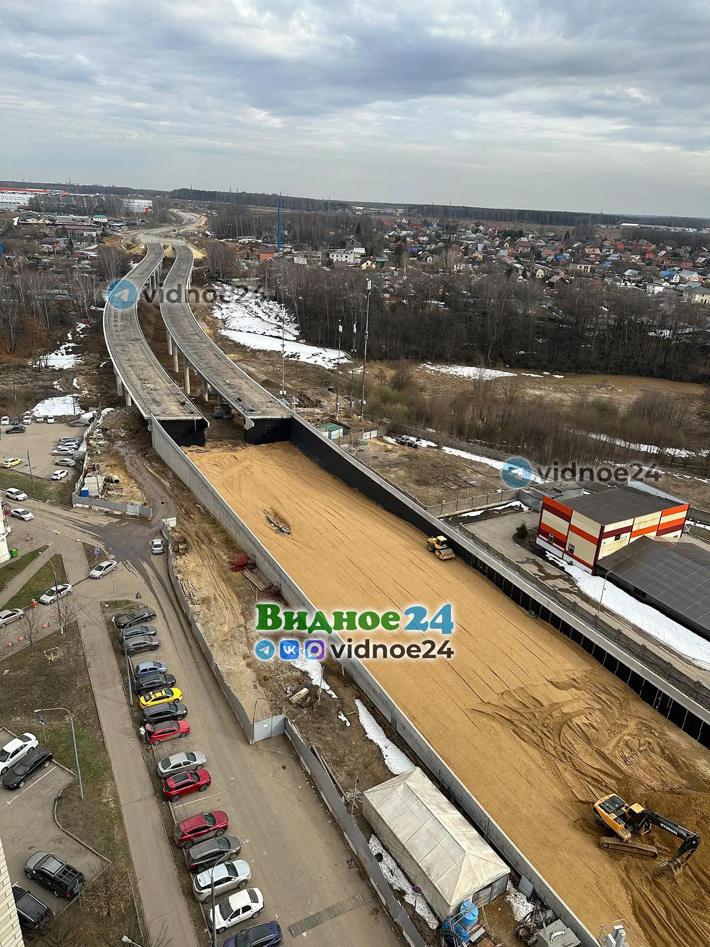 Фотографии строительства Южно-Лыткаринской автодороги (ЮЛА, платный дублер МКАД) на территории города Видное. 1 апреля 2026 года