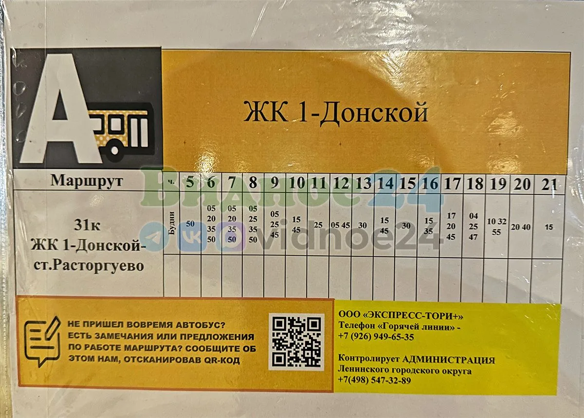 ⚡️ Завтра, 1 апреля, автобусный маршрут 31к начнет ходить по Калиновой улице от ЖК «1-й Донской» до станции Расторгуево и обратно.