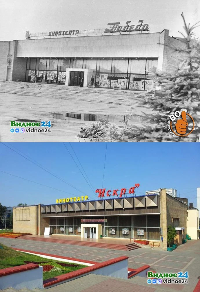 Отметим, что в Домодедово на центральной площади был кинотеатр «Победа», причем здание практически идентично нашему кинотеатру «Искра». В 2000-х годах кинотеатр «Победа» реконструировали и преобразовали в «Молодежный центр «Победа».