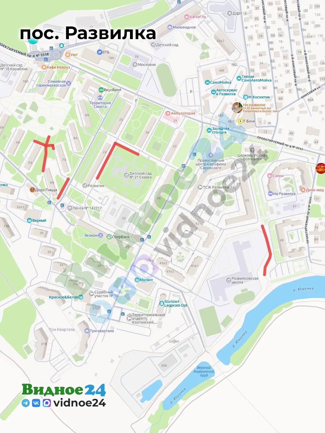 📍 поселок Развилка, дома: 3а, 4а, 5а, 6а и 36