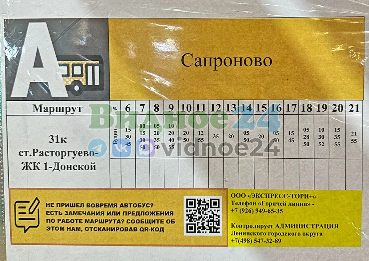 UPD. Добавлено расписание от остановки «Сапроново»