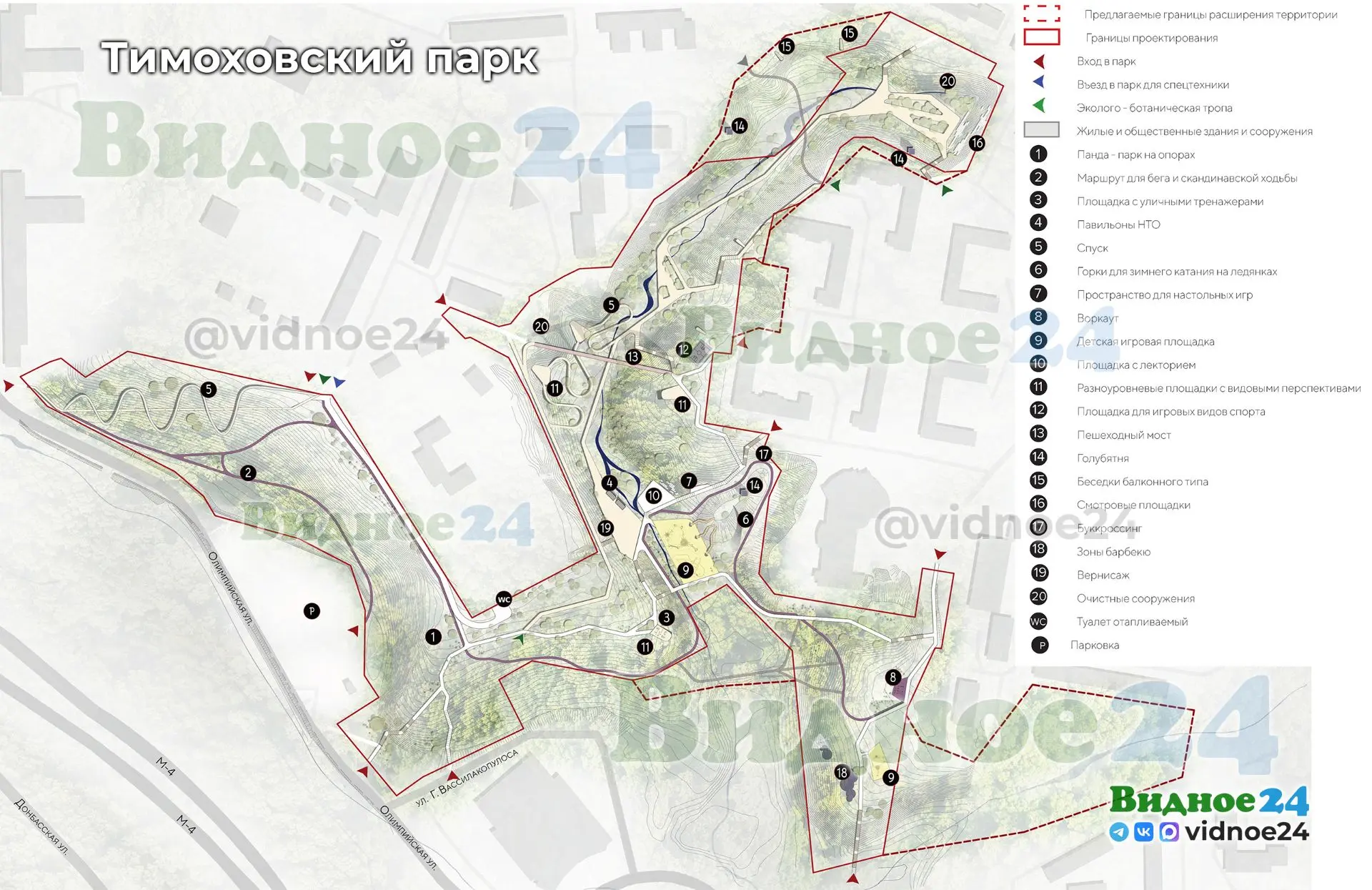 🌳 «Тимоховский парк» в центре города Видное. Здесь, в том числе, должны благоустроить территорию оврага от торгового центра «Курс» до части парка, благоустроенной в 2013 году