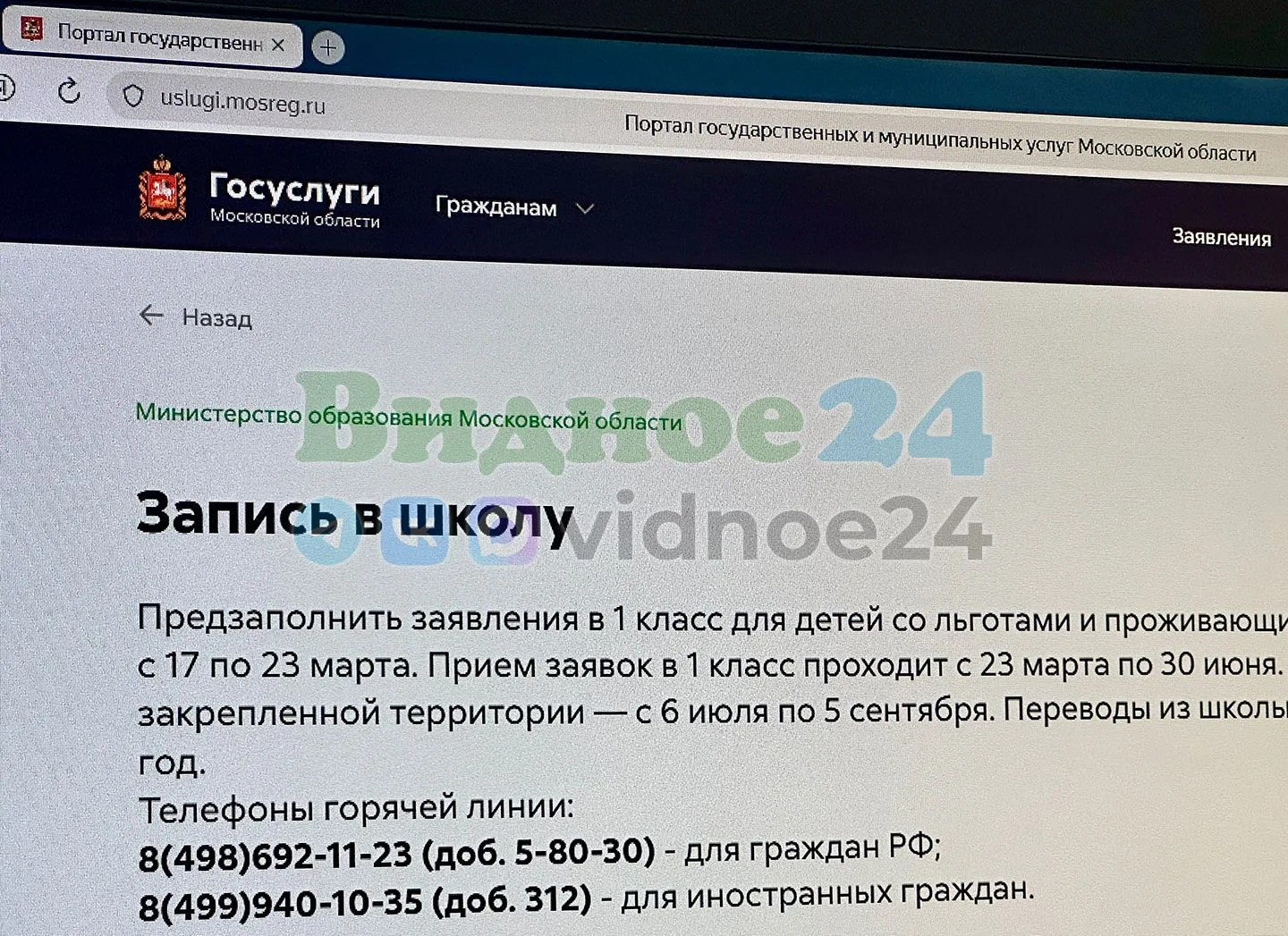 Запись в первый класс в Видном и Ленинском округе начнется раньше срока