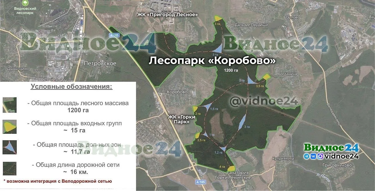 🌳 Лесопарк «Коробово», который находится между посёлком Мисайлово (ЖК «Пригород Лесное») и деревнями Коробово (ЖК «Горки Парк»), Дальние Прудищи и Богданиха. Масштабное благоустройство лесопарка началось в 2025 году