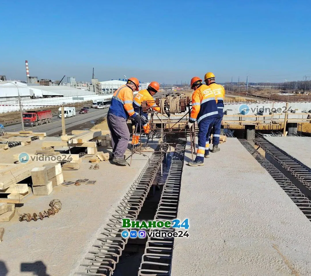 На Каширском шоссе продолжается монтаж балок пролёта 6‑полосной эстакады главного хода на пересечении с Белокаменным шоссе города Видное. Параллельно выполняются работы по сборке поддерживающих устройств для демонтажа старого путепровода Володарского шоссе над автодорогой А‑105 «Москва - аэропорт «Домодедово».