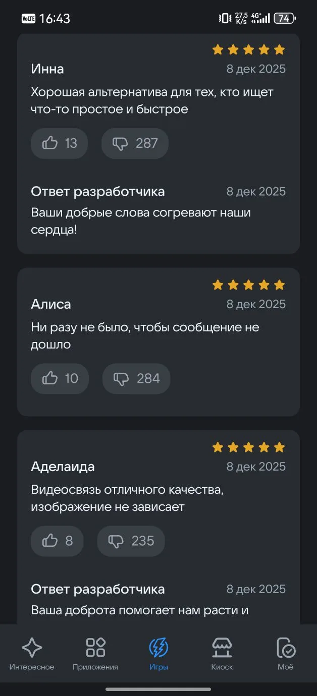 В Rustore удалили все плохие отзывы на мессенджер MAX. Там же накрутили тысячи хвалебных комментариев на 1-2 предложения. Причём все оставлены в один день — 8 декабря, а имена большинства — типичные русские вроде Леона, Эрик и Силантий.