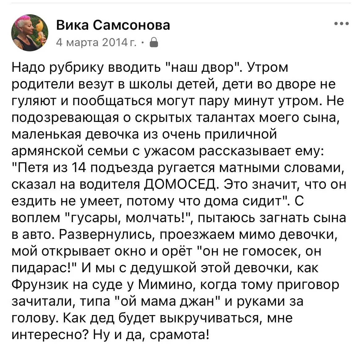 Дело было на Арбате при зрителях, я тогда ещё не научилась думать матом, вот начала после того случая.