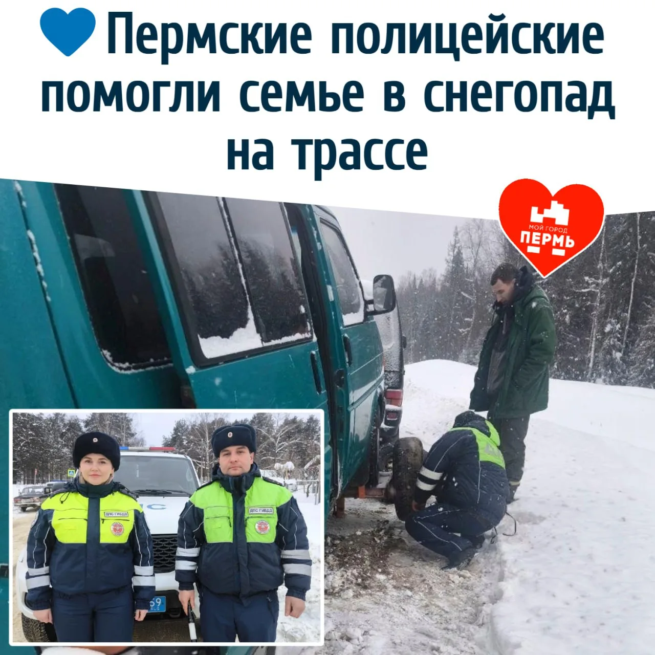 💙 Пермские полицейские помогли семье в снегопад на трассе