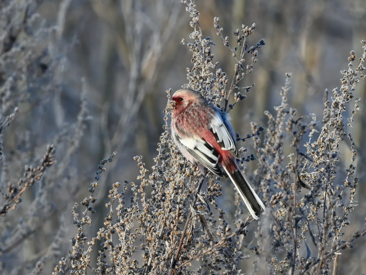Ура́гус, или или длиннохвостый снегирь - певчая птица. Зимует и гнездится у нас. Савино. Пермь.