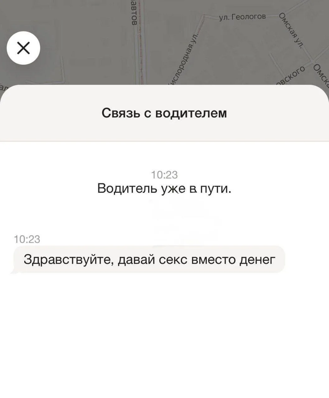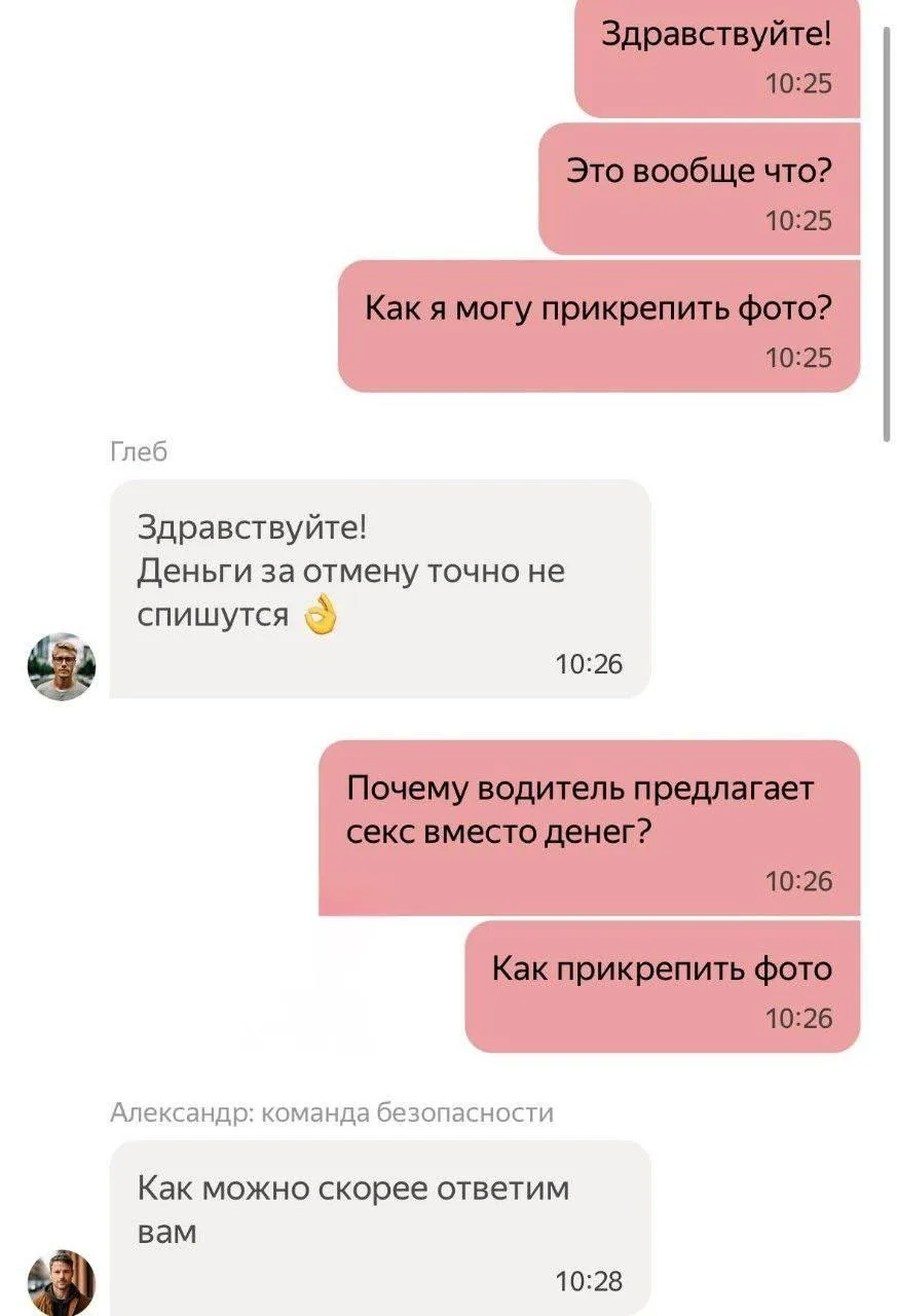 Пассажирка вызвала такси на работу через приложение. Водитель в переписке предложил ей «оплатить поездку сексом». Девушка пожаловалась в поддержку, приложив скриншоты переписки.