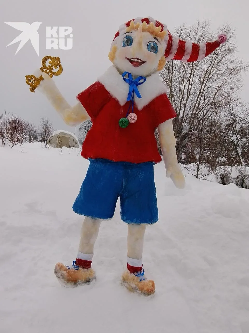 😯 Двухметровый снежный Буратино появился в Пермском крае