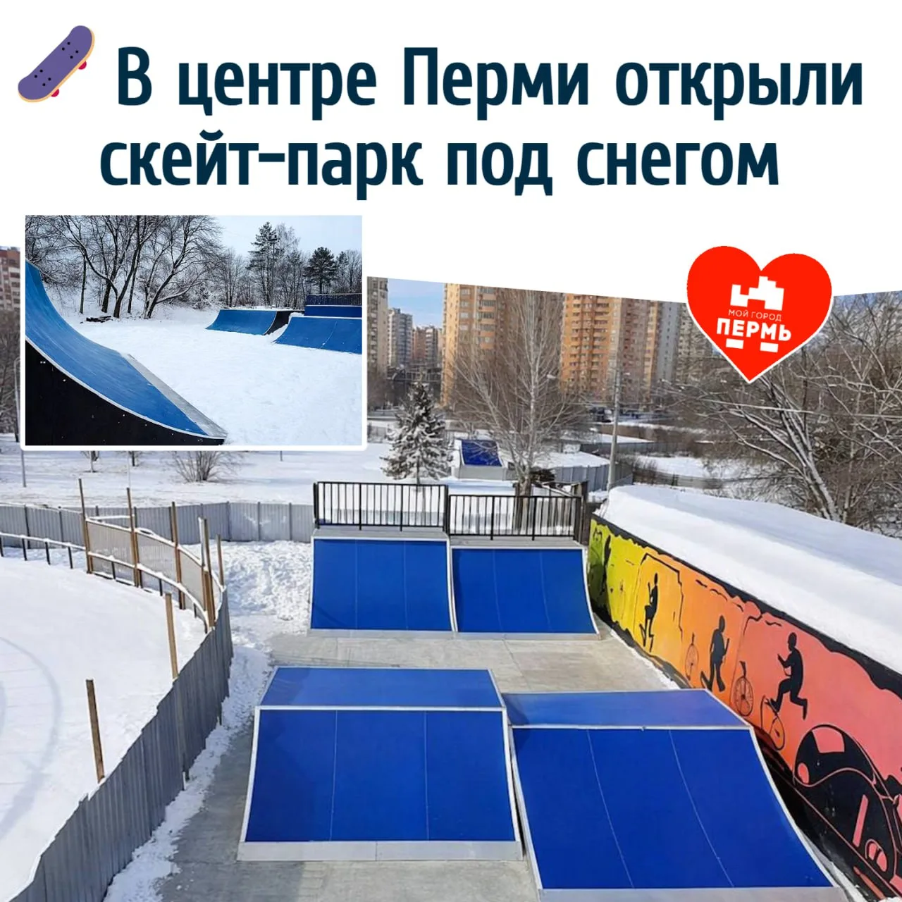 🛹 В центре Перми открыли скейт-парк под снегом