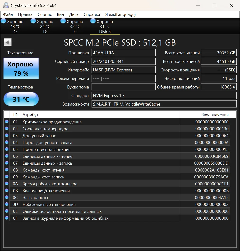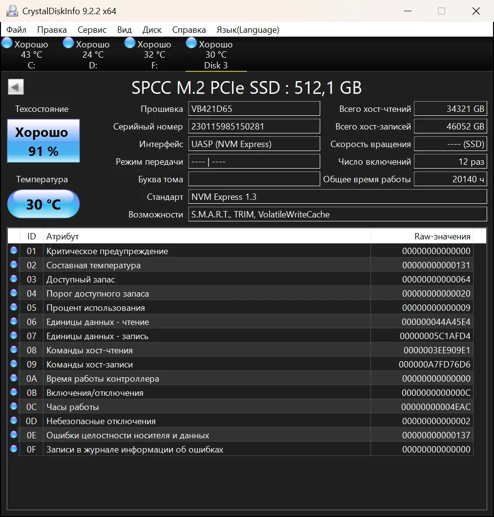 Просто для сравнения: системный SSD в одном из моих компьютеров примерно вдвое старше этой пары, но при этом на него было записано в 4 раза меньше данных. Так что нагрузка и правда экстремальная. Фактически, 2.5 года равны примерно 10 годам в обычном режиме.