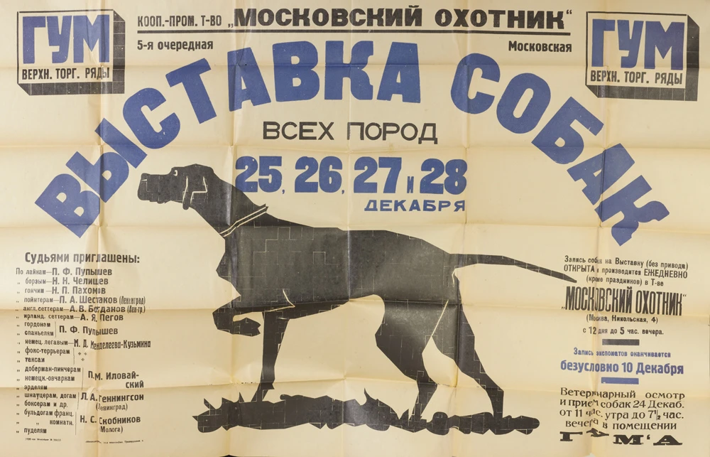 5-я очередная выставка собак всех пород, г. Москва, 1928 год. Афиша из коллекции Николая Павловича Пахомова (1890–1978).