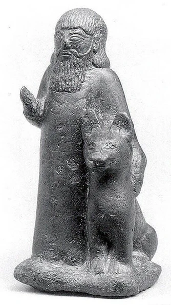 Бронзовая скульптура мужчины с собакой. Месопотамия, VIII-VII вв до н.э.