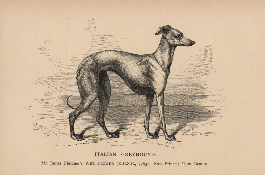 Итальянский грейхаунд, он же левретка. Гравюра 1890 года.