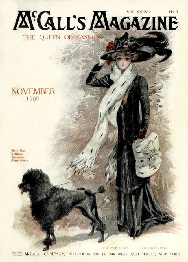 Пудель на обложке американского журнала McCall’s Magazine — The Queen of Fashion, 1909 год. #пудель