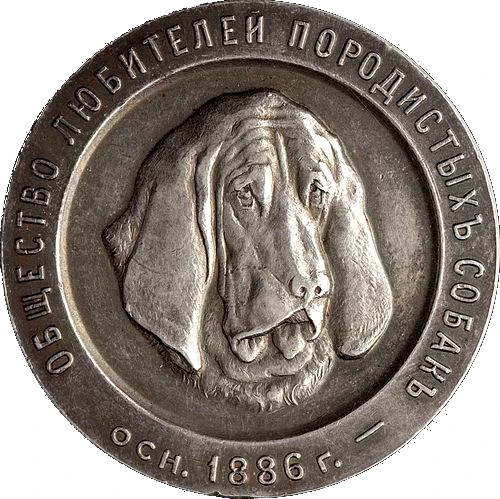 Наградная медаль "Общества любителей породистых собак", 1886 год.