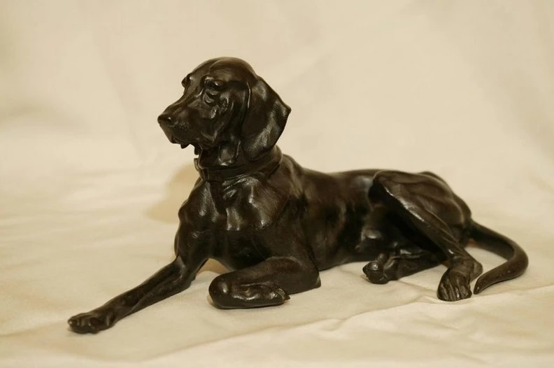 Лежащий пойнтер. Пресс-папье, чугун. Николай Иванович Либерих (1828-1883) - российский скульптор, академик Императорской Академии художеств, лейб-гвардии полковник.