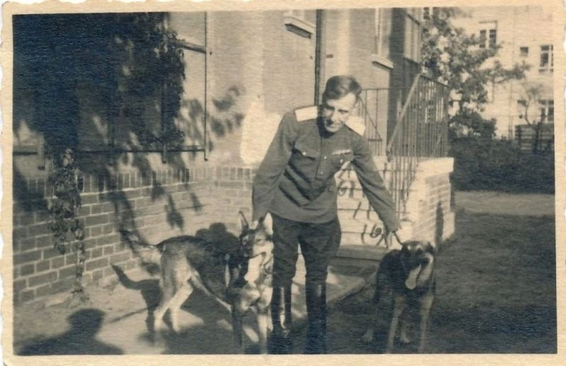 Комендант города Бранденбург полковник Исаков Семен Кузьмич с собаками. Германия, 1946-1947 годы.