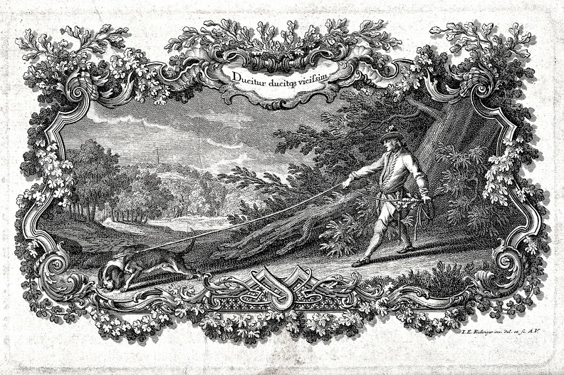 Изображение на титульной странице книги "Abbildung der jagtbaren Thiere" - "Изображения животных, на которых можно охотиться", 1740 год. Johann Elias Ridinger (1698-1767), немецкий художник.
