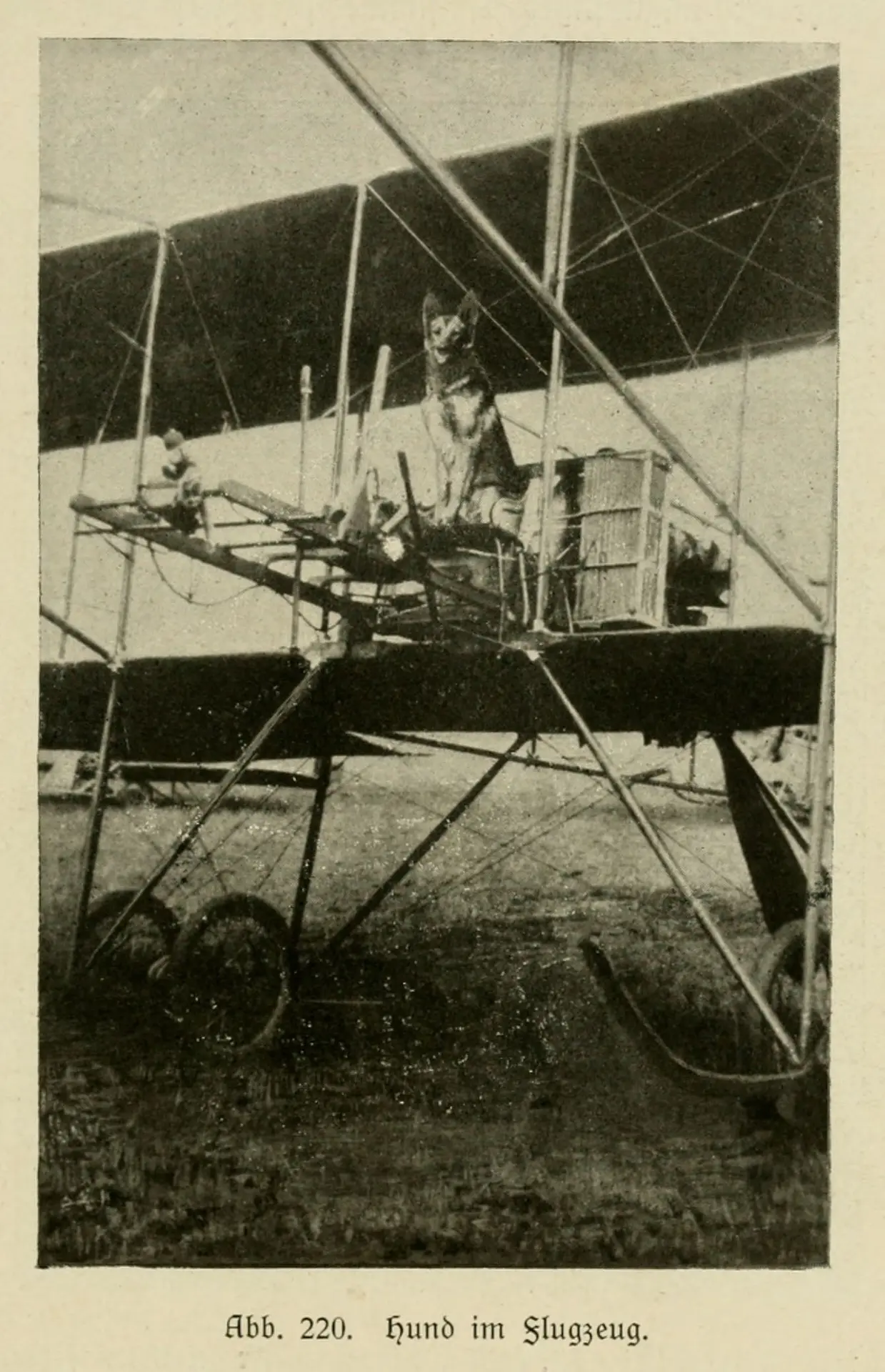 Собака в самолете. Иллюстрация из книги 1921-го года издания "Немецкая овчарка в описаниях и изображениях" Макса фон Штефаница.